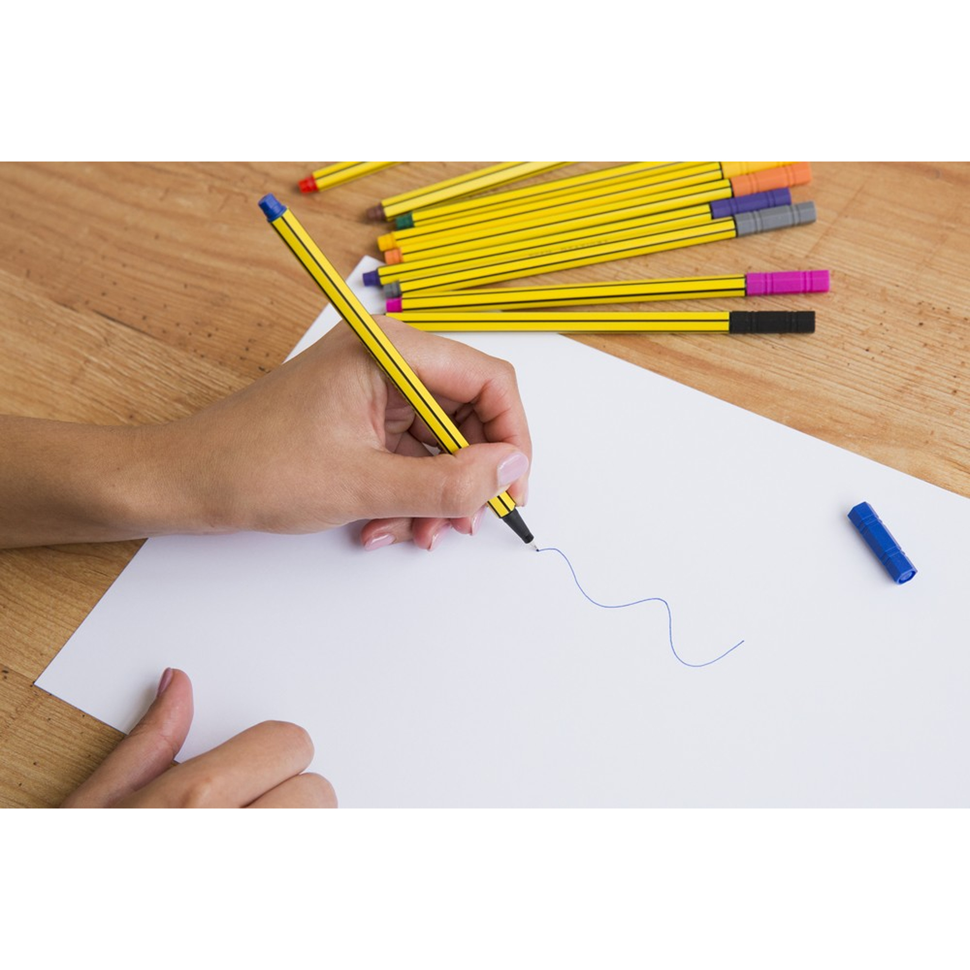Európska jednička medzi linermi. Veľmi obľúbený jednorázový univerzálny liner s jemným hrotom osadeným v kovovom puzdre. Má dlhú životnosť. Vhodný je pri práci s pravítkom a šablónami. Vydrží dlho bez viečka. Stopa písania: 0,4 mm Farba: sada obsahuje 10 štandardných a 5 neónových farieb.