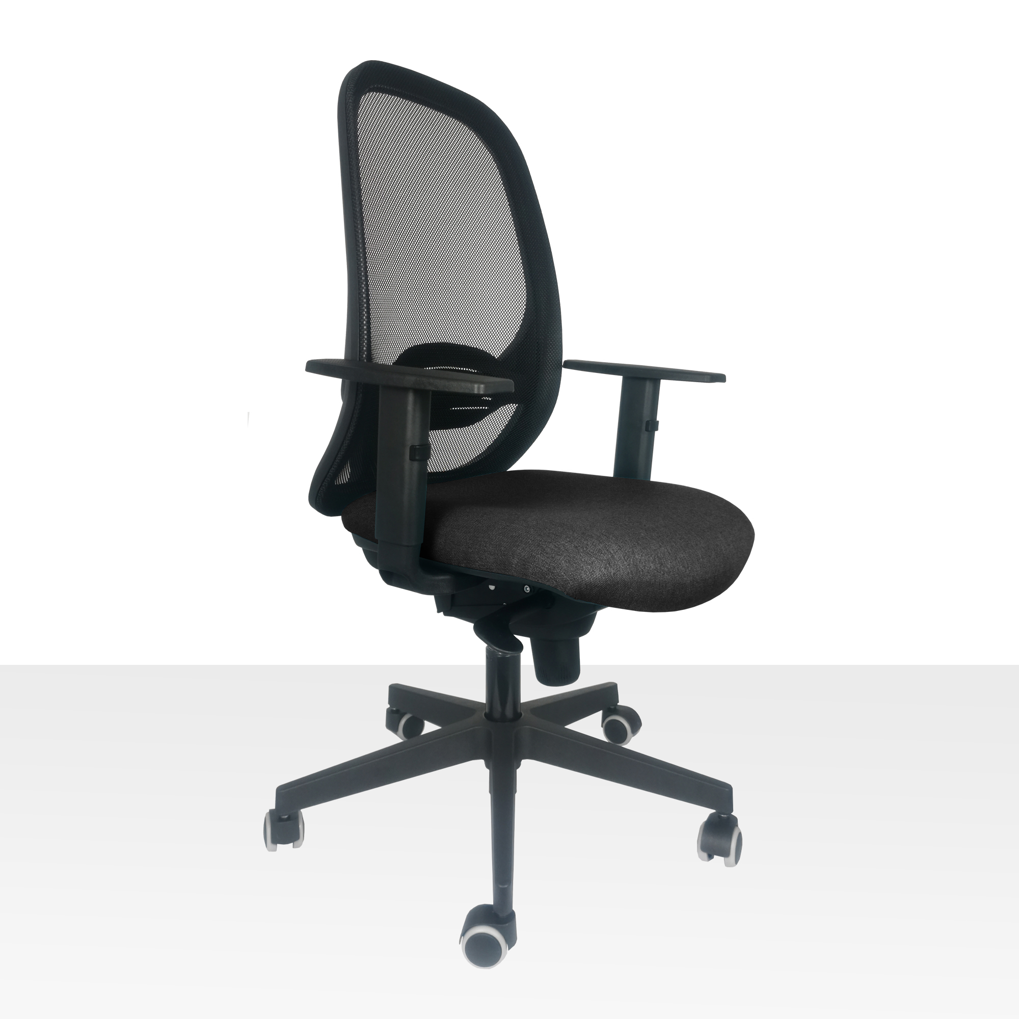 Pohodlná ergonomická kancelárska stolička so synchro mechanika s nosnosťou do 130kg. Pevne sieťované operadlo s výškovo nastaviteľnou bedrovou opierkou pre pohodlné a zdravé sedenie. Nastavenie sily protiváhy podľa telesnej hmotnosti užívateľa. Sedadlo široké 51cm je vyrobené zo studenej peny, čalúnené s kvalitnou látkou Bombay 56, testované voči predraniu až 100 000 cyklov. Cena je uvedená s výškovo nastaviteľnými podrúčkami a s pogumovanými kolieskami vhodné na všetky podlahy. Podhlavník 3D, je možné dokúpiť ako príslušenstvo. Odporúčaná doba sedenia: 6 - 8 hodín denne. Rozmery: šírka operadla 45,0 cm; výška operadla: 56,0 cm; šírka sedadla: 51,0 cm; hĺbka sedadla: 46,0 cm; výška sedu: 44,0 - 55,0 cm. Váha stoličky 18kg. Testované podľa európskej normy EN 1335. Na požiadanie stoličku je možné dodať v inej konfigurácii, alebo v inej poťahovej látke.