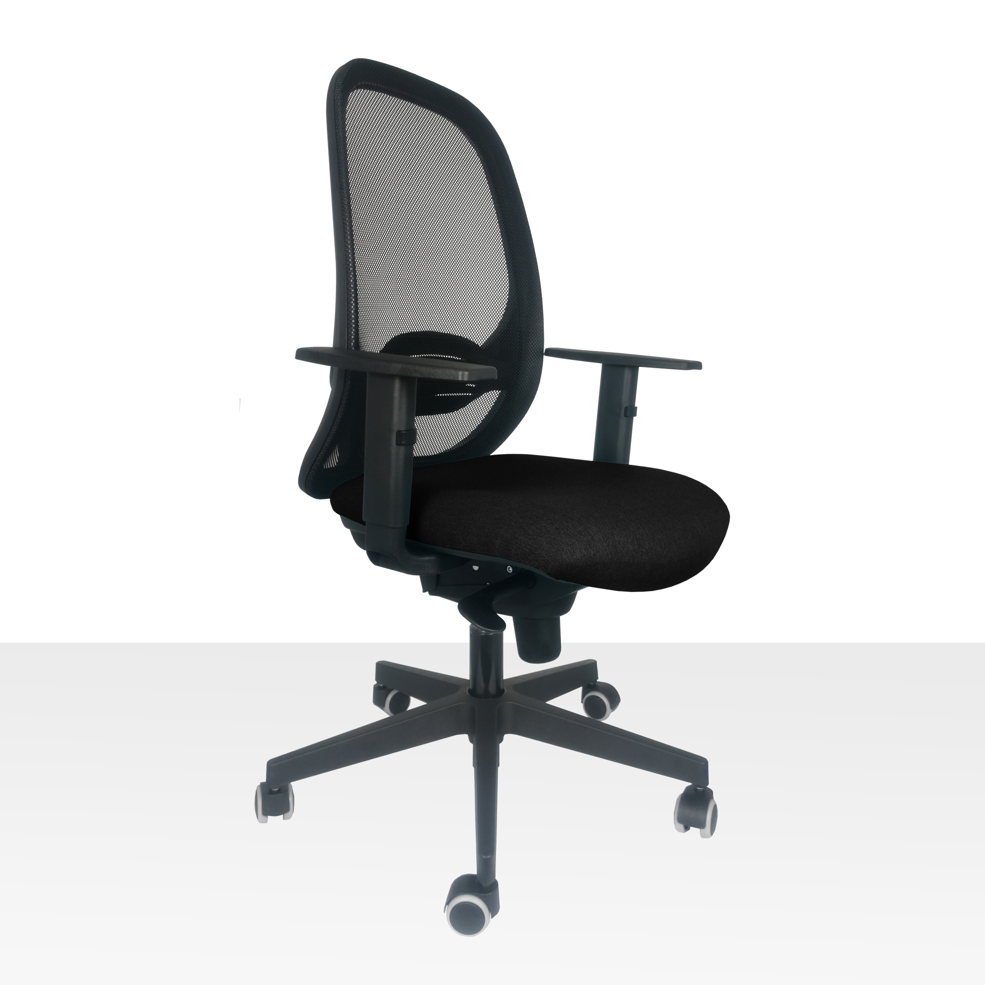 Pohodlná ergonomická kancelárska stolička so synchro mechanika s nosnosťou do 130kg. Pevne sieťované operadlo s výškovo nastaviteľnou bedrovou opierkou pre pohodlné a zdravé sedenie. Nastavenie sily protiváhy podľa telesnej hmotnosti užívateľa. Sedadlo široké 51cm je vyrobené zo studenej peny, čalúnené s kvalitnou látkou Bombay 34, testované voči predraniu až 100 000 cyklov. Cena je uvedená s výškovo nastaviteľnými podrúčkami a s pogumovanými kolieskami vhodné na všetky podlahy. Podhlavník 3D, je možné dokúpiť ako príslušenstvo. Odporúčaná doba sedenia: 6 - 8 hodín denne. Rozmery: šírka operadla 45,0 cm; výška operadla: 56,0 cm; šírka sedadla: 51,0 cm; hĺbka sedadla: 46,0 cm; výška sedu: 44,0 - 55,0 cm. Váha stoličky 18kg. Testované podľa európskej normy EN 1335. Na požiadanie stoličku je možné dodať v inej konfigurácii, alebo v inej poťahovej látke.