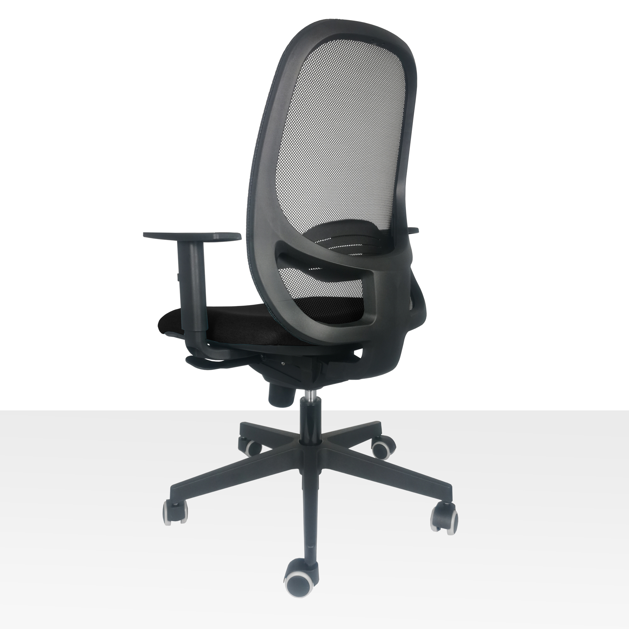 Pohodlná ergonomická kancelárska stolička so synchro mechanika s nosnosťou do 130kg. Pevne sieťované operadlo s výškovo nastaviteľnou bedrovou opierkou pre pohodlné a zdravé sedenie. Nastavenie sily protiváhy podľa telesnej hmotnosti užívateľa. Sedadlo široké 51cm je vyrobené zo studenej peny, čalúnené s kvalitnou látkou Bombay 33, testované voči predraniu až 100 000 cyklov. Cena je uvedená s výškovo nastaviteľnými podrúčkami a s pogumovanými kolieskami vhodné na všetky podlahy. Podhlavník 3D, je možné dokúpiť ako príslušenstvo. Odporúčaná doba sedenia: 6 - 8 hodín denne. Rozmery: šírka operadla 45,0 cm; výška operadla: 56,0 cm; šírka sedadla: 51,0 cm; hĺbka sedadla: 46,0 cm; výška sedu: 44,0 - 55,0 cm. Váha stoličky 18kg. Testované podľa európskej normy EN 1335. Na požiadanie stoličku je možné dodať v inej konfigurácii, alebo v inej poťahovej látke.