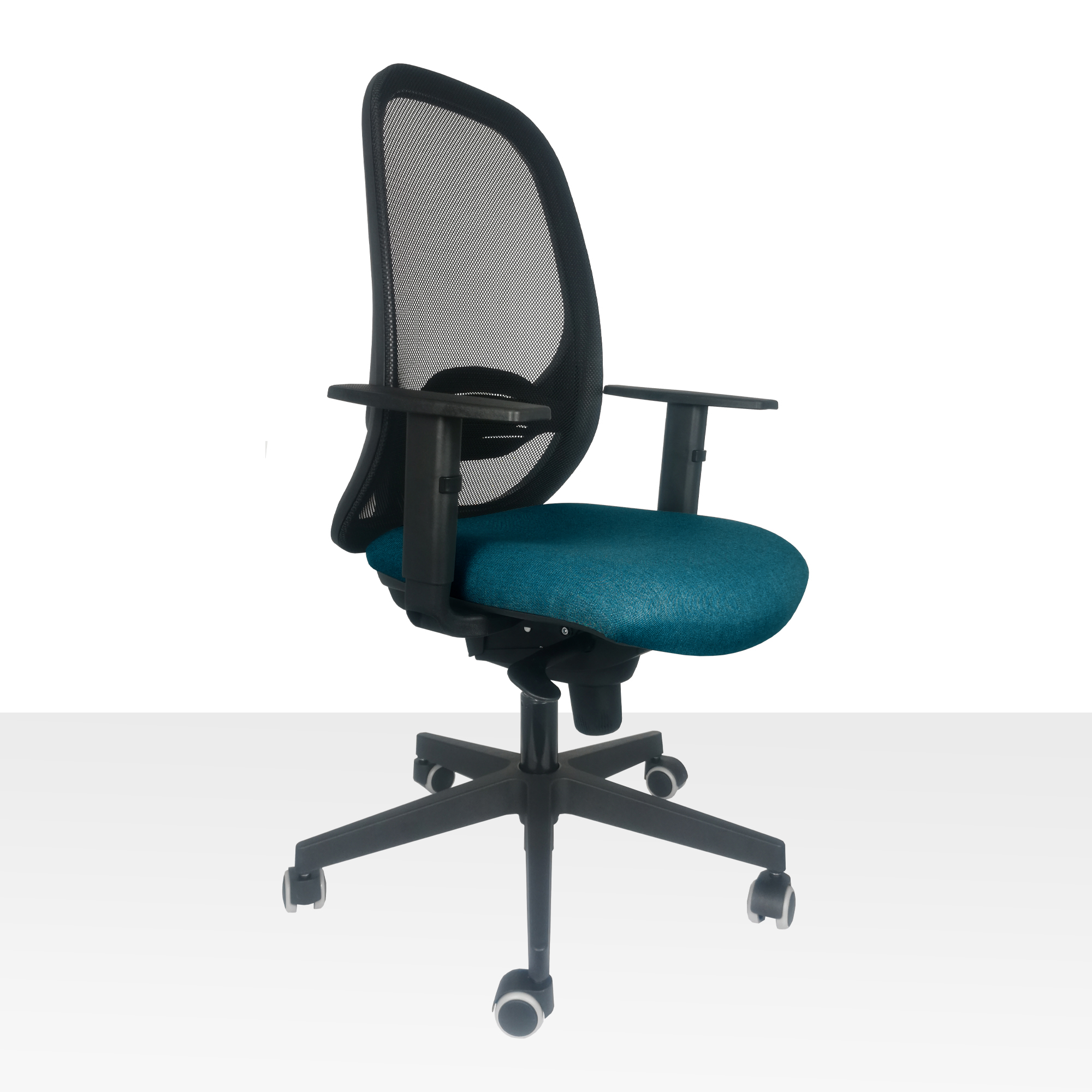 Pohodlná ergonomická kancelárska stolička so synchro mechanika s nosnosťou do 130kg. Pevne sieťované operadlo s výškovo nastaviteľnou bedrovou opierkou pre pohodlné a zdravé sedenie. Nastavenie sily protiváhy podľa telesnej hmotnosti užívateľa. Sedadlo široké 51cm je vyrobené zo studenej peny, čalúnené s kvalitnou látkou Bombay 37, testované voči predraniu až 100 000 cyklov. Cena je uvedená s výškovo nastaviteľnými podrúčkami a s pogumovanými kolieskami vhodné na všetky podlahy. Podhlavník 3D, je možné dokúpiť ako príslušenstvo. Odporúčaná doba sedenia: 6 - 8 hodín denne. Rozmery: šírka operadla 45,0 cm; výška operadla: 56,0 cm; šírka sedadla: 51,0 cm; hĺbka sedadla: 46,0 cm; výška sedu: 44,0 - 55,0 cm. Váha stoličky 18kg. Testované podľa európskej normy EN 1335. Na požiadanie stoličku je možné dodať v inej konfigurácii, alebo v inej poťahovej látke.