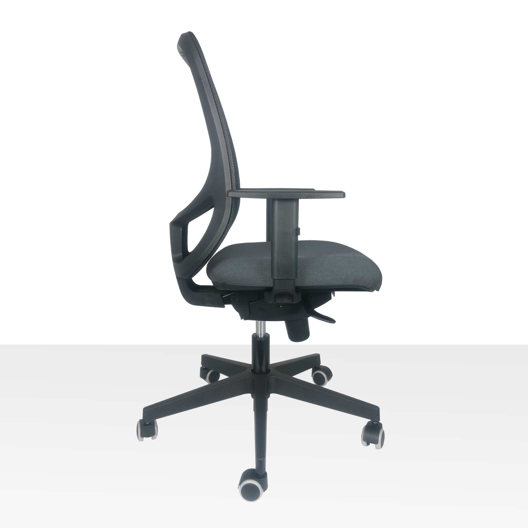 Pohodlná ergonomická kancelárska stolička so synchro mechanika s nosnosťou do 130kg. Pevne sieťované operadlo s výškovo nastaviteľnou bedrovou opierkou pre pohodlné a zdravé sedenie. Nastavenie sily protiváhy podľa telesnej hmotnosti užívateľa. Sedadlo široké 51cm je vyrobené zo studenej peny, čalúnené s kvalitnou látkou Bombay 34, testované voči predraniu až 100 000 cyklov. Cena je uvedená s výškovo nastaviteľnými podrúčkami a s pogumovanými kolieskami vhodné na všetky podlahy. Podhlavník 3D, je možné dokúpiť ako príslušenstvo. Odporúčaná doba sedenia: 6 - 8 hodín denne. Rozmery: šírka operadla 45,0 cm; výška operadla: 56,0 cm; šírka sedadla: 51,0 cm; hĺbka sedadla: 46,0 cm; výška sedu: 44,0 - 55,0 cm. Váha stoličky 18kg. Testované podľa európskej normy EN 1335. Na požiadanie stoličku je možné dodať v inej konfigurácii, alebo v inej poťahovej látke.