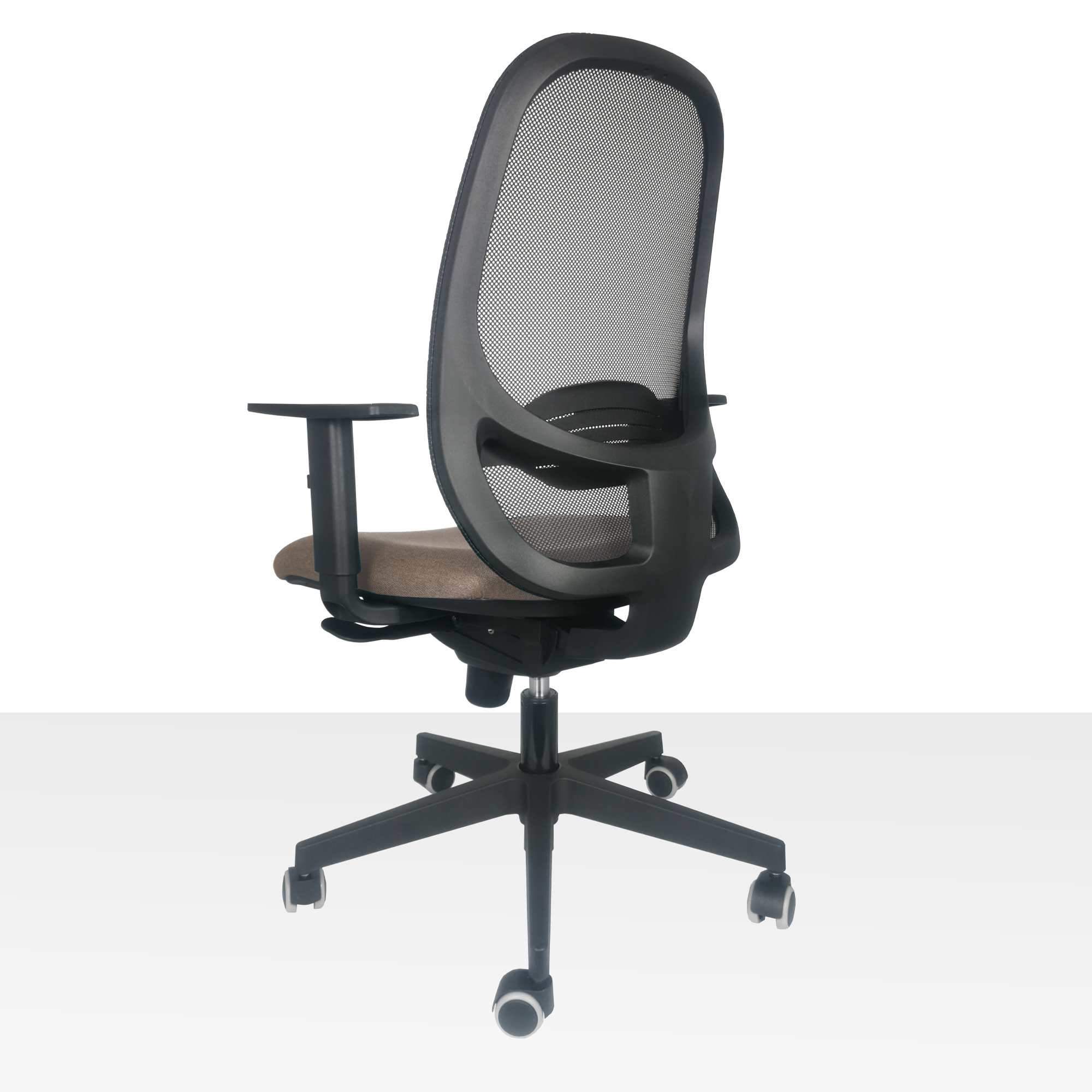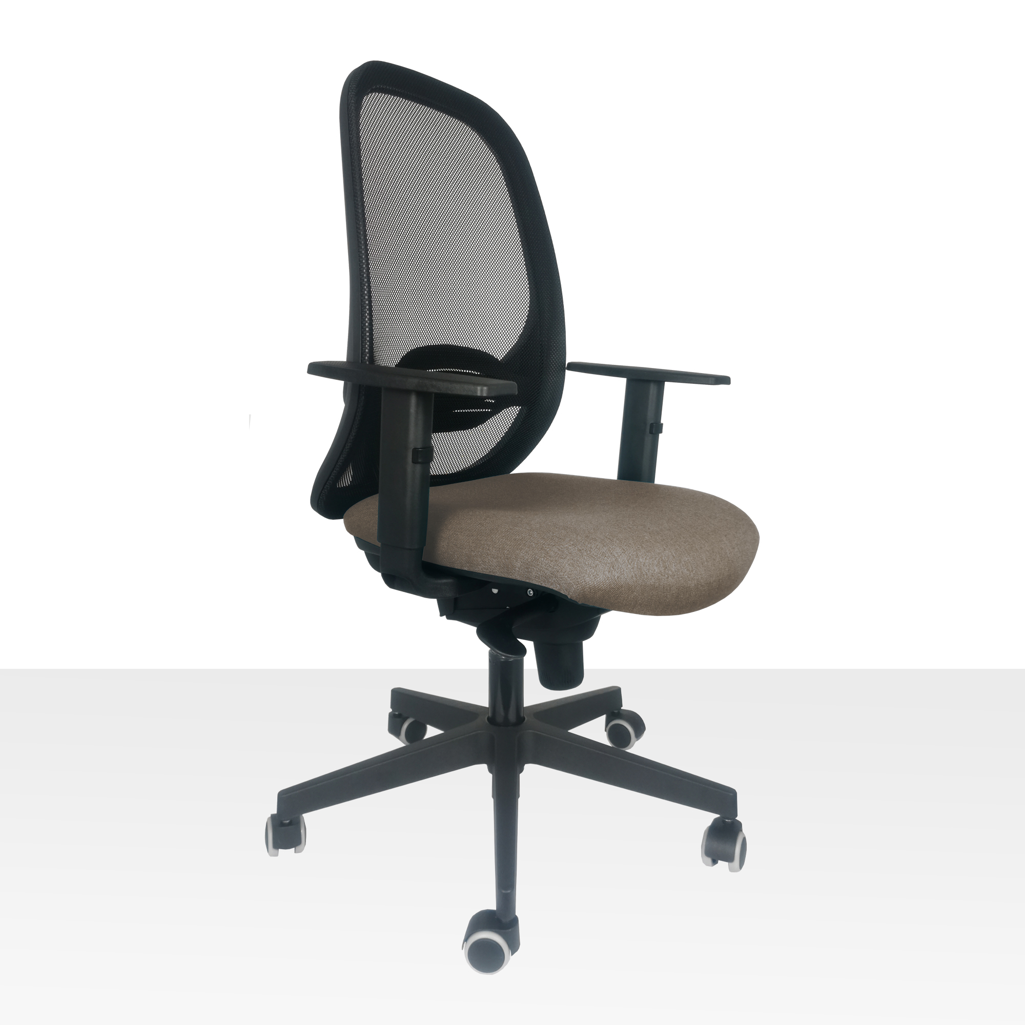 Pohodlná ergonomická kancelárska stolička so synchro mechanika s nosnosťou do 130kg. Pevne sieťované operadlo s výškovo nastaviteľnou bedrovou opierkou pre pohodlné a zdravé sedenie. Nastavenie sily protiváhy podľa telesnej hmotnosti užívateľa. Sedadlo široké 51cm je vyrobené zo studenej peny, čalúnené s kvalitnou látkou Bombay 34, testované voči predraniu až 100 000 cyklov. Cena je uvedená s výškovo nastaviteľnými podrúčkami a s pogumovanými kolieskami vhodné na všetky podlahy. Podhlavník 3D, je možné dokúpiť ako príslušenstvo. Odporúčaná doba sedenia: 6 - 8 hodín denne. Rozmery: šírka operadla 45,0 cm; výška operadla: 56,0 cm; šírka sedadla: 51,0 cm; hĺbka sedadla: 46,0 cm; výška sedu: 44,0 - 55,0 cm. Váha stoličky 18kg. Testované podľa európskej normy EN 1335. Na požiadanie stoličku je možné dodať v inej konfigurácii, alebo v inej poťahovej látke.