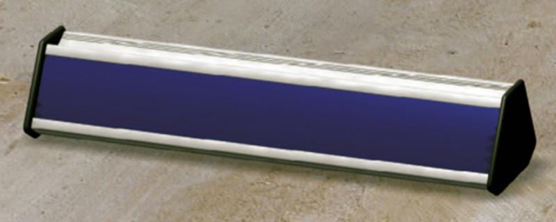 Stojanček DeSign na stôl pre menovku, alebo označenie funkcie. Boky má ukončené so šedými plastovými bočnicami, ktoré slúžia aj ako nožičky. Predná aj zadná strana je vyrobená so zásovných hliníkových profilov pre