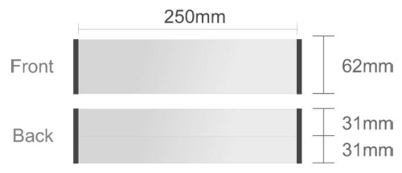 D116 je Stojanček DeSign na stôl pre menovku a/alebo označenie funkcie. Strany uzavreté plastovými koncovkami. Veľkosť: 62x250 mm. CR21Pozostáva z: CP21 x {TL62-S (DeSi/All) ZÁKL PROF 62mm ELOX} 2 x {TL31-S (DeSi/All) ZÁKL PROF 31mm ELOX} CR212 x {TLDW62-B (DeS) BLOKOVACÍ PIN 62mm ČIERNA} 2 x {TLDBW-B (DeS) BLOKOVACÍ PIN ČIERNA} Váha cca: 0,223 kg. Do zásuvných profilov označených ZÁS PROF je možné vkladať výmennú grafiku (tlačenú na papier napr. v laserovej tlačiarni) prekrytú rozptyľovacou fóliou alebo laserom, či mechanicky gravírované doskové materiály. Profily označené ZÁKL PROF je možné popisovať rezanou fóliou, sieťotlačou, tlačou na fóliu, gravírovaním a podobne.