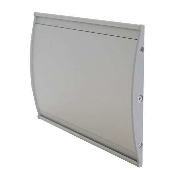 Elegantné menovky k dverám s vymeniteľnou grafikou výšky 93mm pre mená a funkcie zamestnancov, označenie priestorov atť. (vytlačenej na papieri). Hranatý tvar a hliníkové bočnice spolu tvoria moderný vzhľad. Stačí vložiť štítok a prekryť čírou prítlačnou fóliou hrúbky 1mm ktorá je súčasťou dodávky. Pre jednoduché odstránenie prítlačnej krycej fólie (pri výmene štítkov) doporučujeme použiť TLSCUPL gumový prísavný klobúčik pre priľnavé fólie, ktoré je dostupné ako príslušenstvo. Kotviaci materiál na stenu je súčasťou dodávky