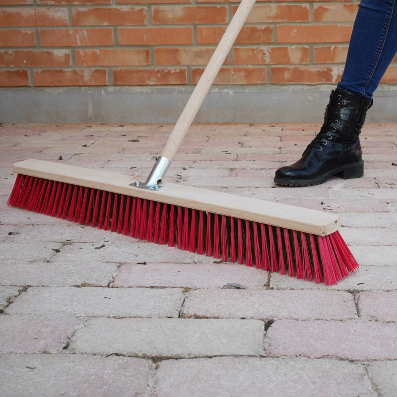 Cestárská metla 60cm bez povrchovej úpravy s pevnými štetinami. 140cm násada je vyrobená z tvrdého bukového dreva.