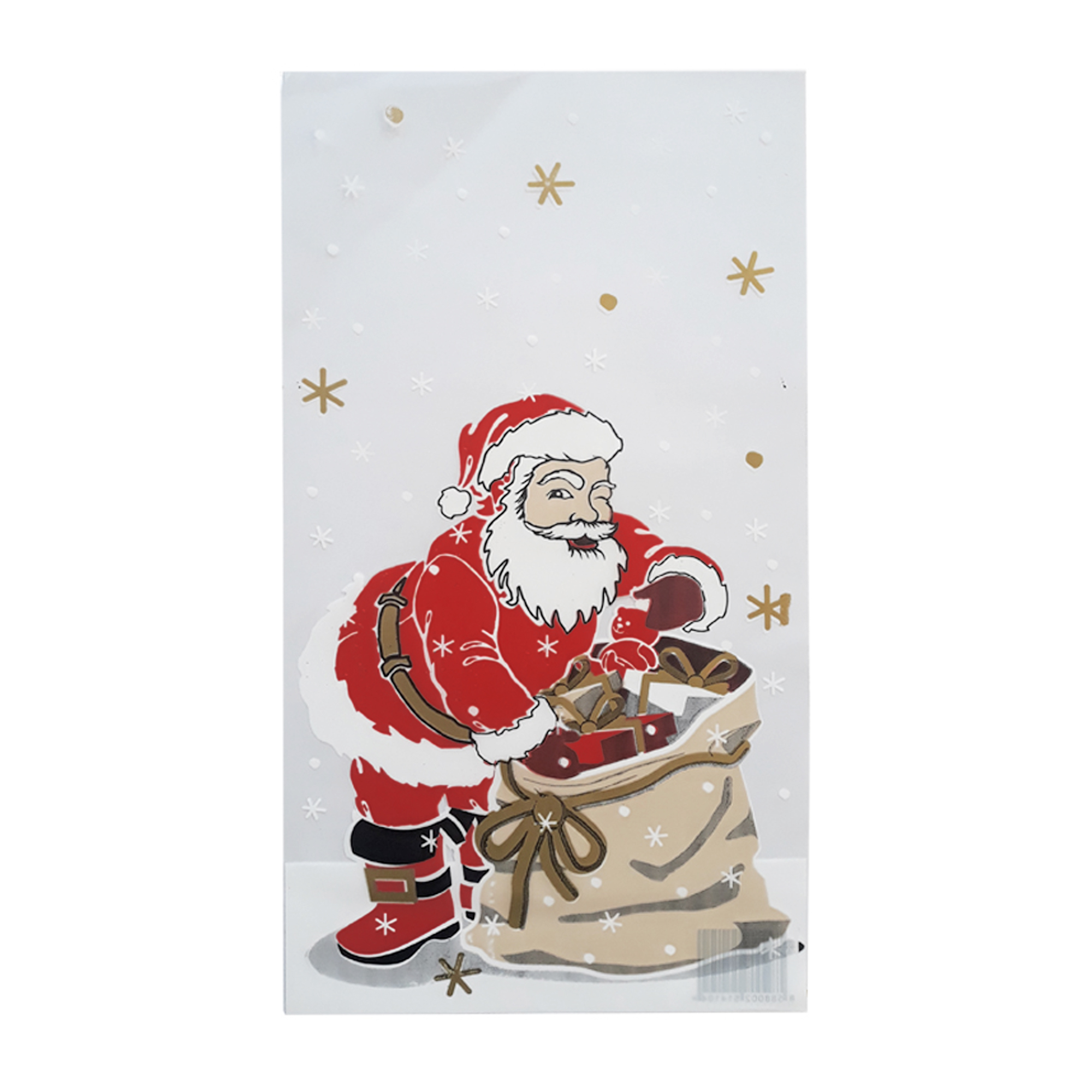 **Mikulášsky transparentný sáčok** s veselým motívom " Mikuláš s batohom " má rozmery 20 x 37 cm. Ideálny na balenie mikulášskych darčekov, sladkostí či drobných prekvapení. Transparentný dizajn umožňuje čiastočný pohľad na obsah, zatiaľ čo mikulášsky motív pridáva predvianočnú atmosféru. Skvelá voľba pre vytvorenie radostnej mikulášskej nálady!