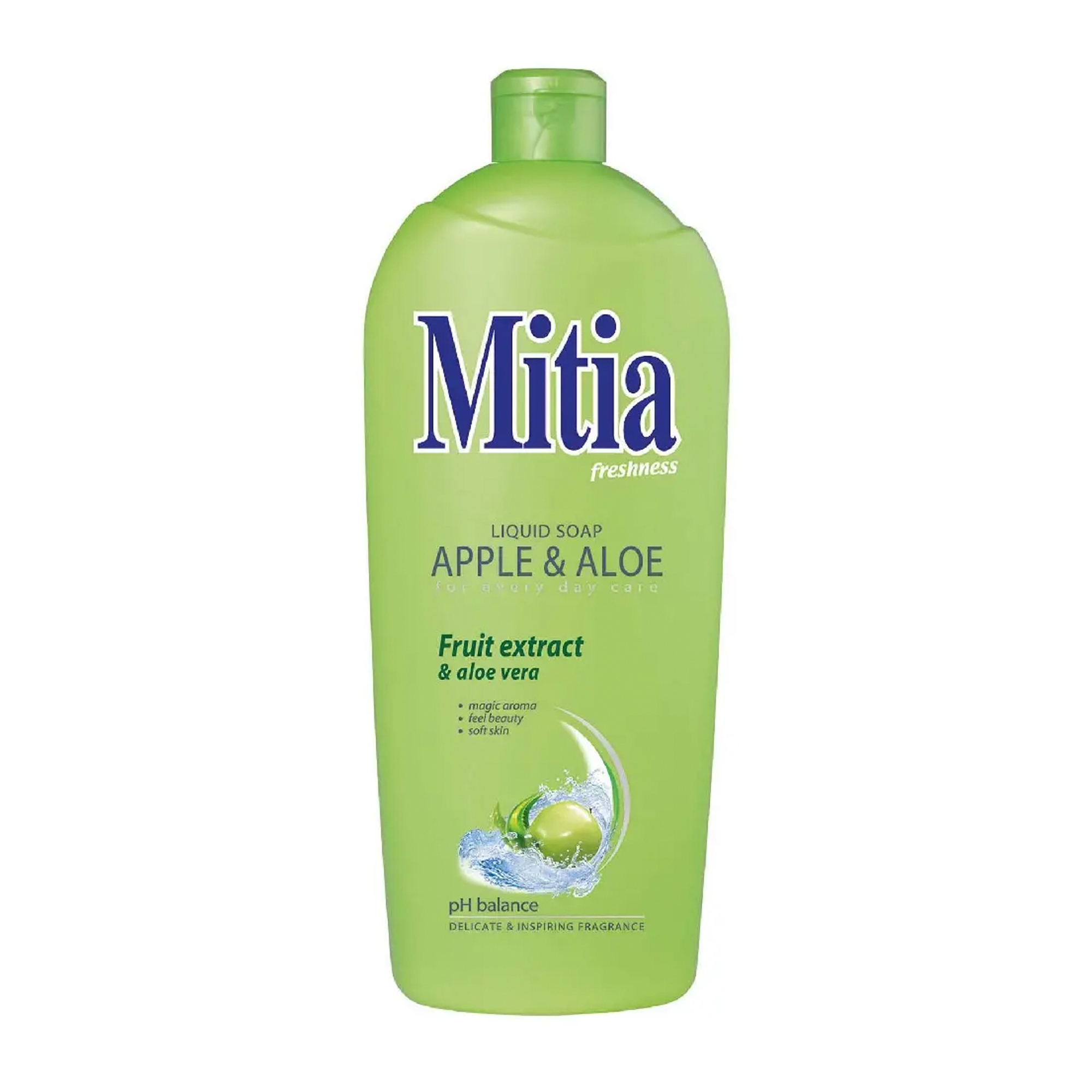 Tekute mydlo. Tekute mydlo. Krémové tekuté mýdlo Mitia jablko pre každodennú starostlivosť o citlivú pokožku. Vyniká dokonalými ošetrujúcími schopnosťami. Decentne parfemované s vôňou zeleného jablka. Dodáva príjemný pocit čistoty. Objem: 1l.