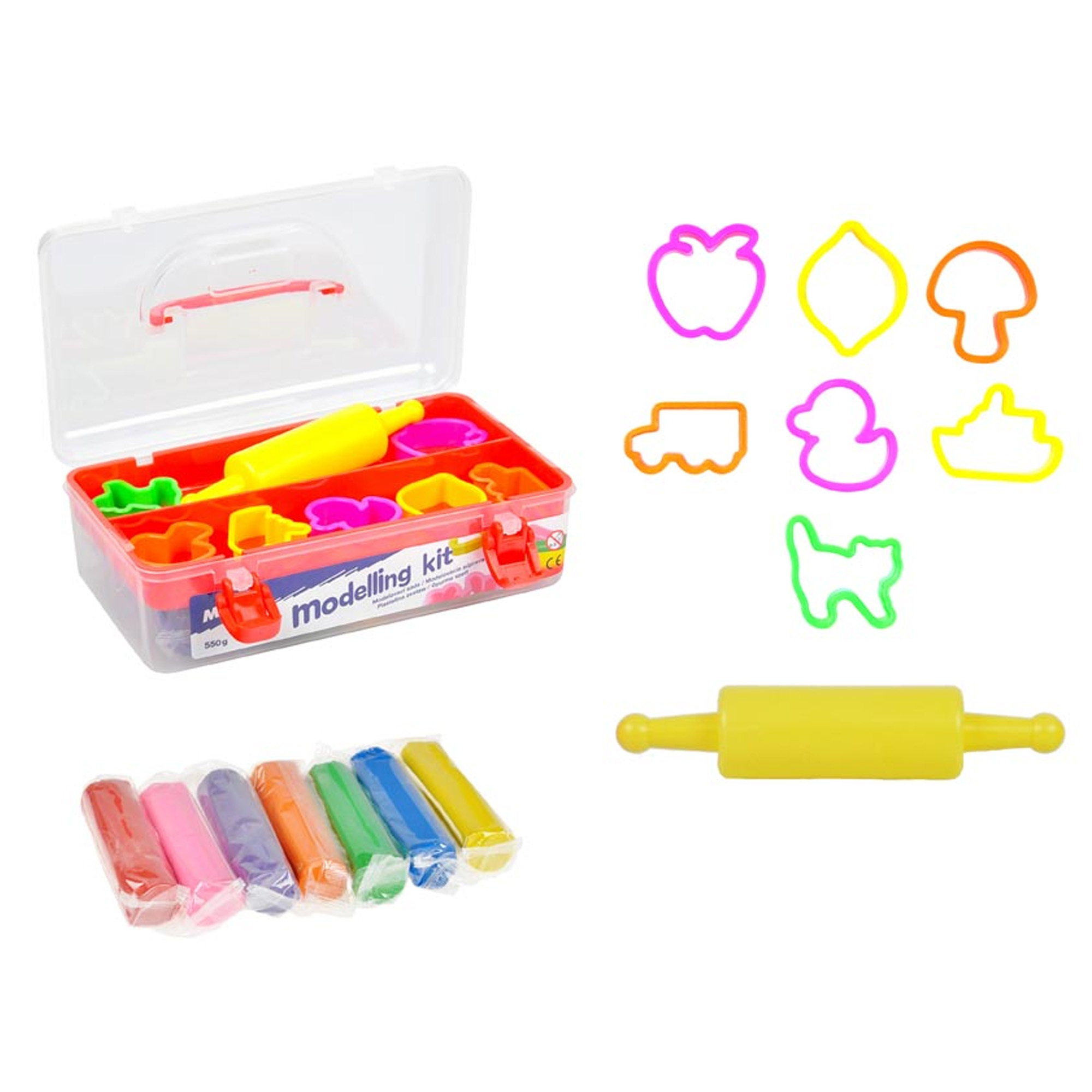 Obsah súpravy: 7 farieb 550g modelovacej hmoty- plasteliny, : Ružová, oranžová, žltá, červená, zelená, modrá a fialová. Každá farba je žiarivá a ľahko tvarovateľná, čo umožňuje deťom ľahko vytvárať rôzne tvary a vzory. 7 farebných formičiek rôznych tvarov**: Formičky sú navrhnuté pre jednoduché a rýchle vytváranie špecifických tvarov a objektov. Sú ideálne pre deti, ktoré sa chcú naučiť základy formovania a tvorby.