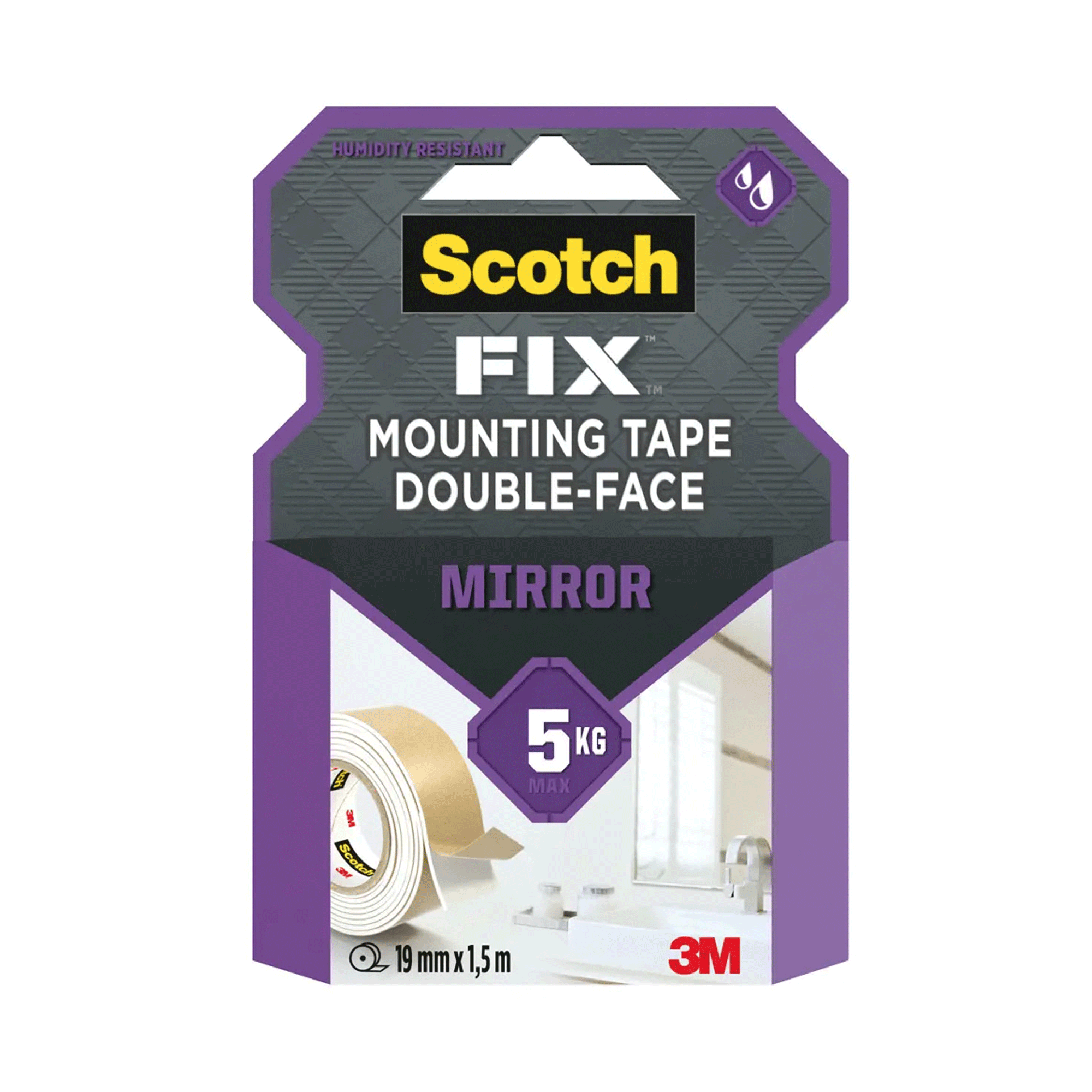 Obojstranná montážna páska Scotch-Fix™ vhodná na použitie v kúpeľni. Táto penová páska s nosnosťou do 5 kg je určená na použitie v interiéri a je vhodná aj do vlhkého prostredia. Preto je ideálna na lepenie zrkadiel, keramiky, dlaždíc, povrchovo upraveného dreva, kovov, skla a na maľované steny. Rozmery 19 mm × 1,5 m.