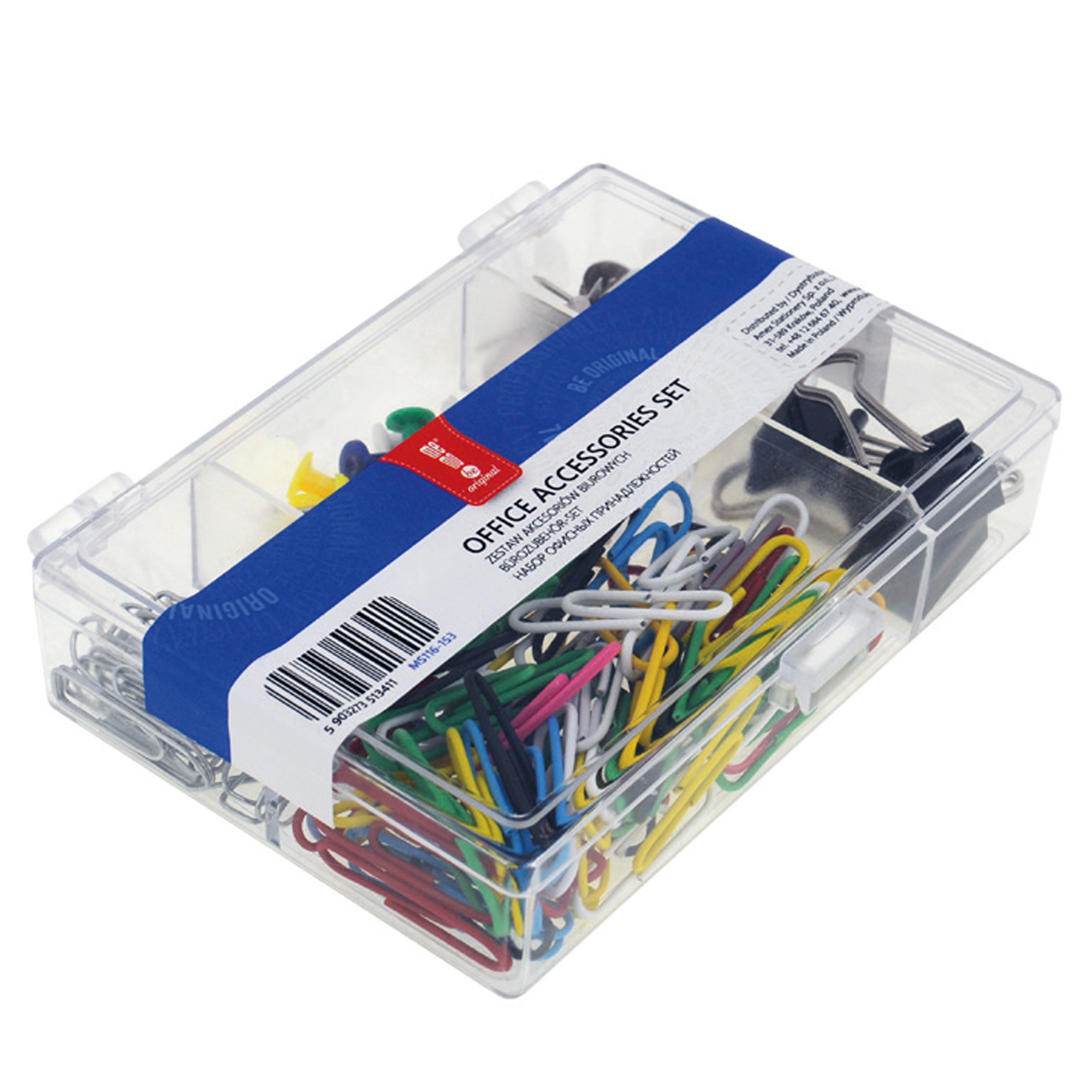 Sada kancelárskych sponiek a klipov. Balenie 153ks v plastovej krabičke.