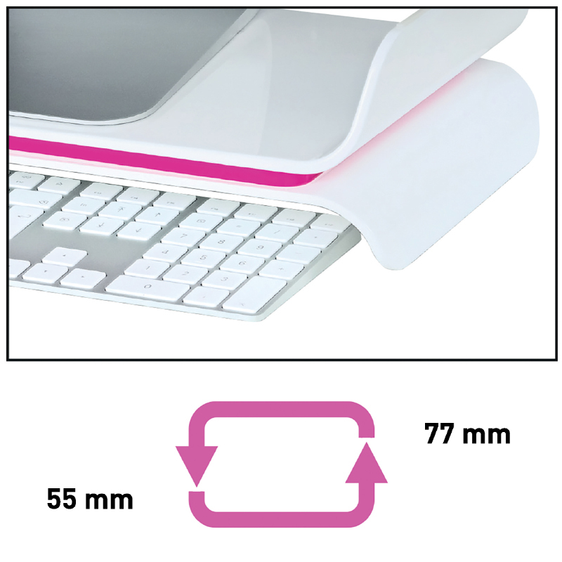 Ergonomický podstavec pod monitor Leitz WOW zdvihne váš monitor do optimálnej výšky, čo podporuje zdravé a ergonomicky správne držanie tela a zvyšuje produktivitu. Elegantný dizajn ponúka organizované pracovné prostredie aj na malom stole s obmedzeným miestom pre klávesnicu. Podstavec pod monitor je výškovo nastaviteľný a hodí sa do všetkých moderných kancelárií zameraných na minimalistický dizajn a pohodlné pracovné prostredie. Dodajte si energiu pri práci aj v živote. Zvýšte pozíciu monitora do optimálnej výšky pre svoje oči – po otočení podstavca si môžete vybrať z dvoch rôznych výšok. Stabilný dizajn so širokou spodnou základnou zabezpečujúci bezpečné postavenie aj väčším monitorom a all-in-one počítačom až do veľkosti 27″. Miesto pod stojanom umožňuje uložiť klávesnicu, aby bol váš pracovný priestor usporiadaný. Tento produktový rad Leitz WOW v atraktívnych a štýlových farbách dodá vášmu pracovnému priestoru aj domovu WOW faktor. Rozmery 209 x 112 x 483 (mm).