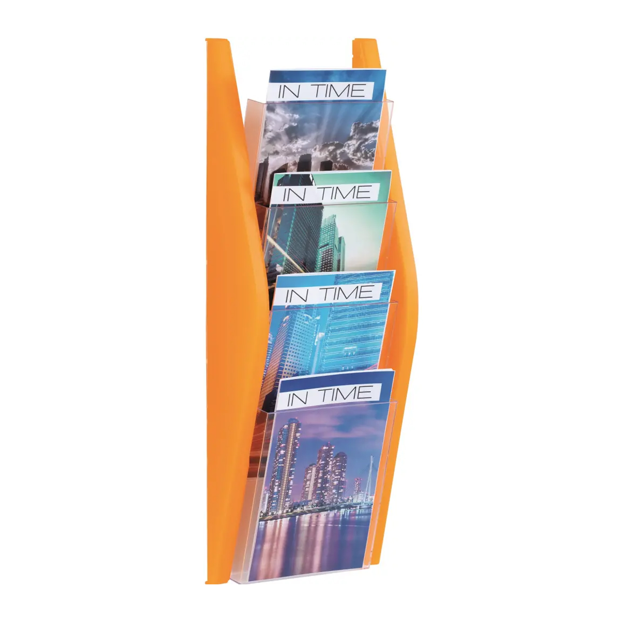 Nástenný závesný stojan so 4 priehľadnými priehradkami na prehľadné ukladanie dokumentov, katalógov a iných materiálov formátu A4. Už nebudete musieť strácať čas s hľadaním. Vyrobený z kvalitného plastu. Rozmery (š x v x h) 275 x 540 x 80 mm. Farba strieborná.