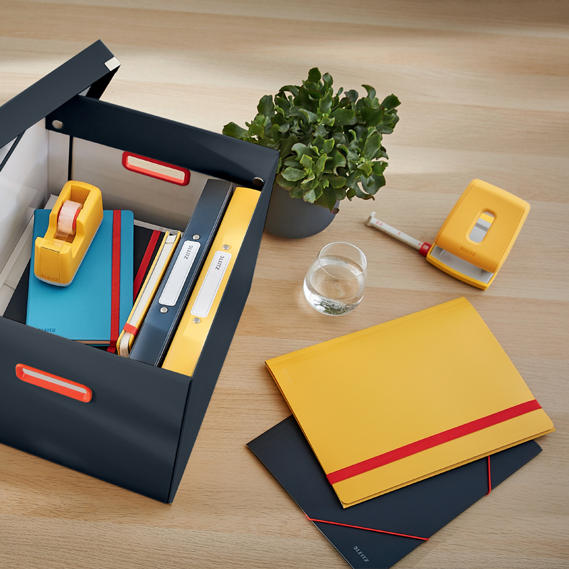 Atraktívna skladacia škatuľa Click & Store COSY univerzálnej veľkosti s vekom vhodná na ukladanie dokumentov, albumov, zakladačov a pod. až do veľkosti A4. Rýchle a jednoduché skladanie/rozkladanie pomocou patentov. Rozloženú škatuľu je možné umiestniť do veka a šetriť tak miesto. Má štýlové červené otvory na pohodlné uchopenie pri zdvíhaní a prenášaní. Prémiová kartónová škatuľa Leitz Cosy Click & Store je ideálna na udržiavanie poriadku doma i v kancelárii a pomáha vám rýchlo a jednoducho si zorganizovať prácu. Vďaka minimalistickému dizajnu a príjemným matným farbám môžete svojmu pracovnému priestoru pridať štýl a farbu. Kolekcia Leitz Cosy kombinuje komfort domáceho pohodlia s prvotriednou kvalitou a vytvára tak pozitívne a produktívne pracovné prostredie. Vyrobené z pevného vysokokvalitného kartónu pre dlhú životnosť, čistá, polomatná PP povrchová úprava. Váha 0,9 kg. Rozmery 281 x 200 x 370 mm.