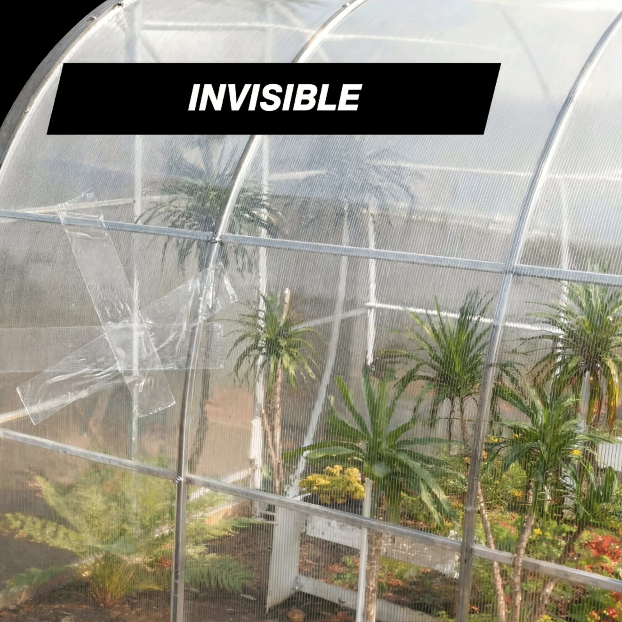 Keď potrebujete vykonať nenápadné opravy, použite neviditeľnú pásku Scotch® Extremium™ Invisible. Má vysokú priľnavosť a je takmer neviditeľná, bez riedkeho plátna, aby bola úplne priehľadná. Je ideálnym riešením pre všetky nenápadné opravy, od utesnenia rozbitých dvierok z plexiskla až po opravu diery v skleníku alebo opravu rozbitého tienidla. Páska zostane po čase prakticky neviditeľná, bez žltnutia. Je to spôsobené špecifickým lepidlom bez rozpúšťadiel s veľmi vysokou odolnosťou voči UV-žiareniu. Páska tvorí dlhotrvajúci spoj a dobre priľne na sklo a plasty v interiéri aj exteriéri. Má tiež vysokú rozťažnosť, čo ju určuje pre všetky opravy plastov.