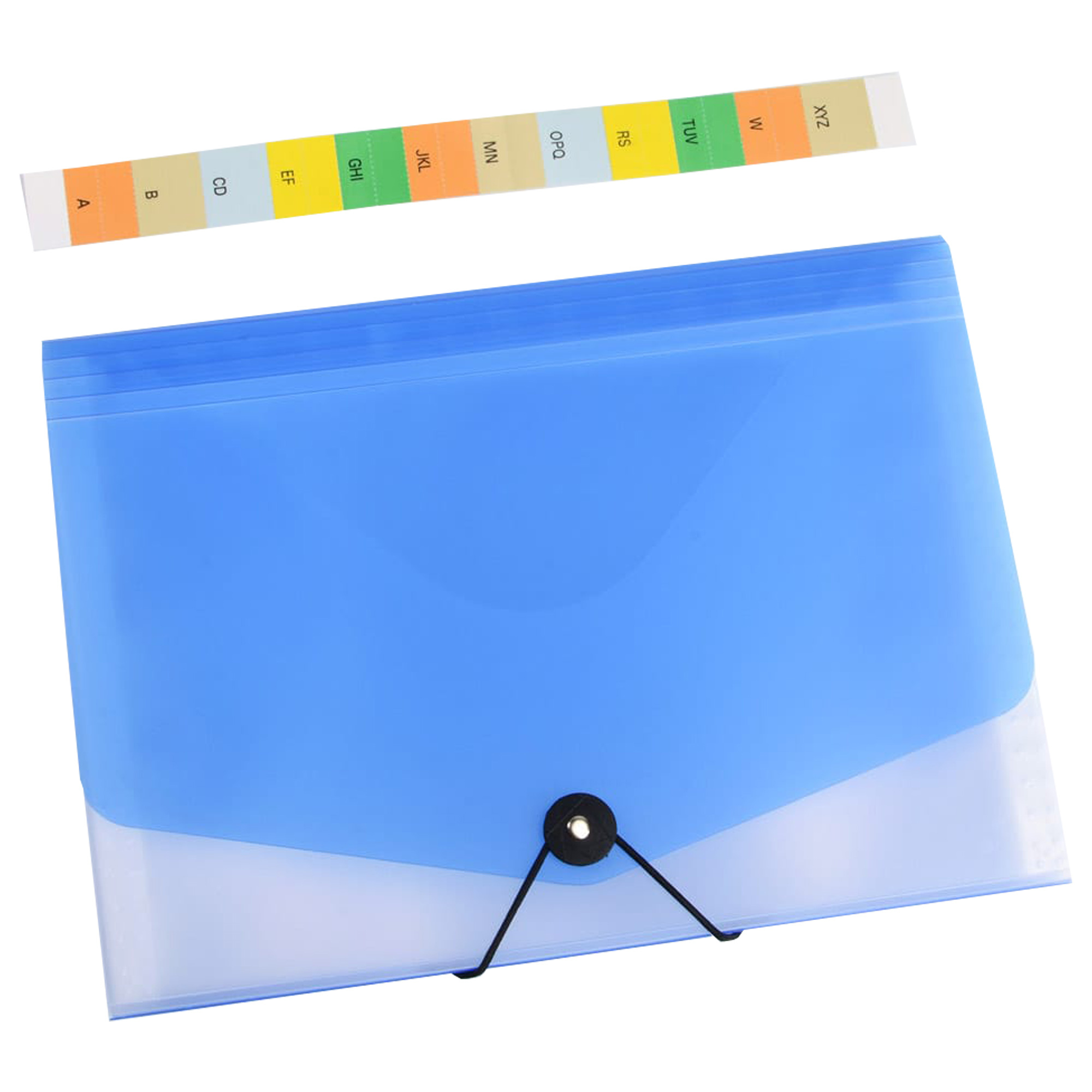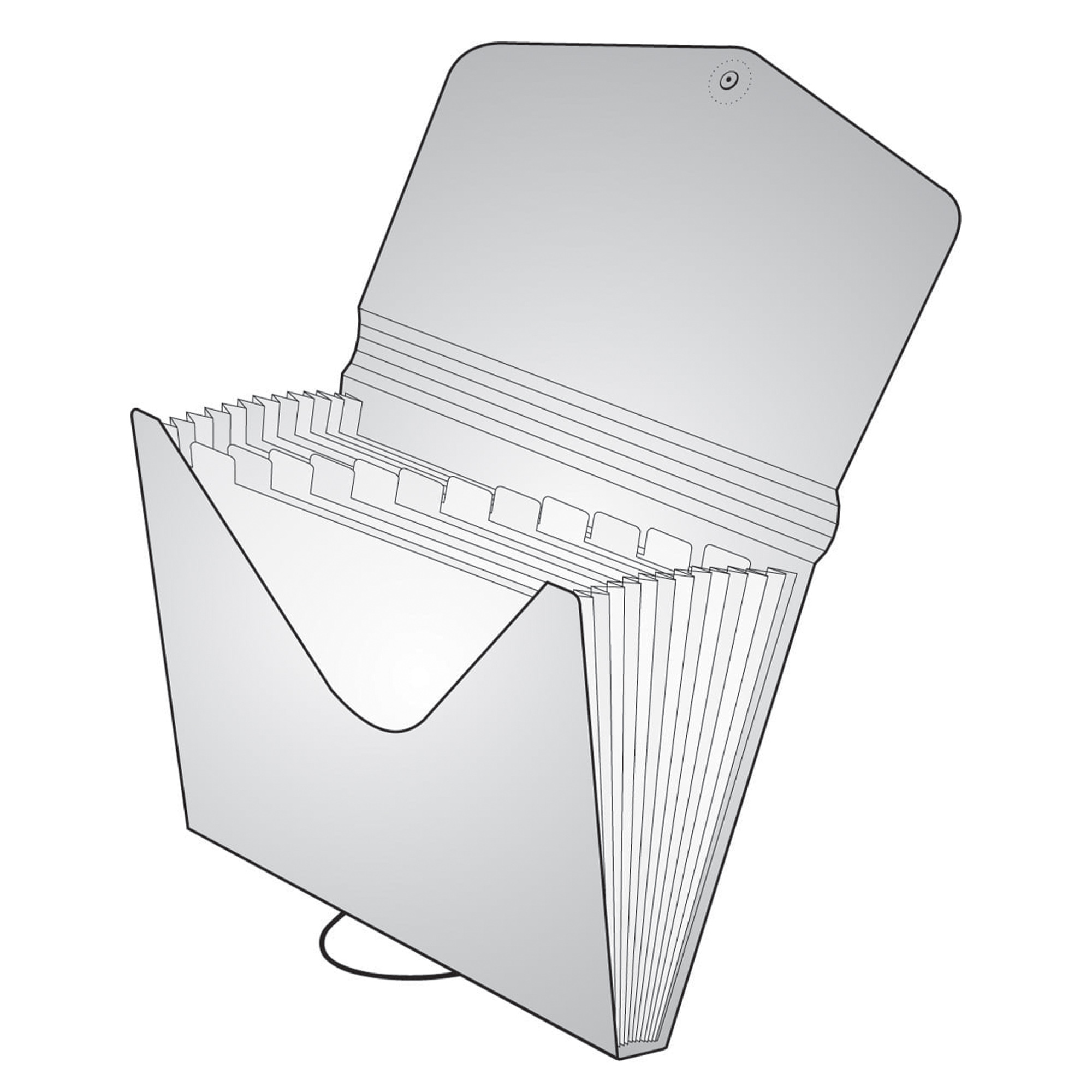Organizér dokumentov do formátu A4. Má 13 vnútorných priehradiek s praktickými popismi, vďaka ktorým budete mať všetky materiály prehľadne usporiadané. Horná časť je roztiahnuteľná na spôsob harmoniky, čo umožňuje pohodlné uloženie väčšieho množstva dokumentov. Uzatváranie pomocou gumičky a gombíka zabezpečuje spoľahlivú ochranu obsahu. Vyrobené z extra silného polypropylénu – klopa má hrúbku až 700 mic. vnútorné vrecká 140 mic, čo zaručuje vysokú odolnosť a dlhú životnosť. Ideálne riešenie na každodennú organizáciu a archiváciu dokumentov doma, v škole či kancelárii.