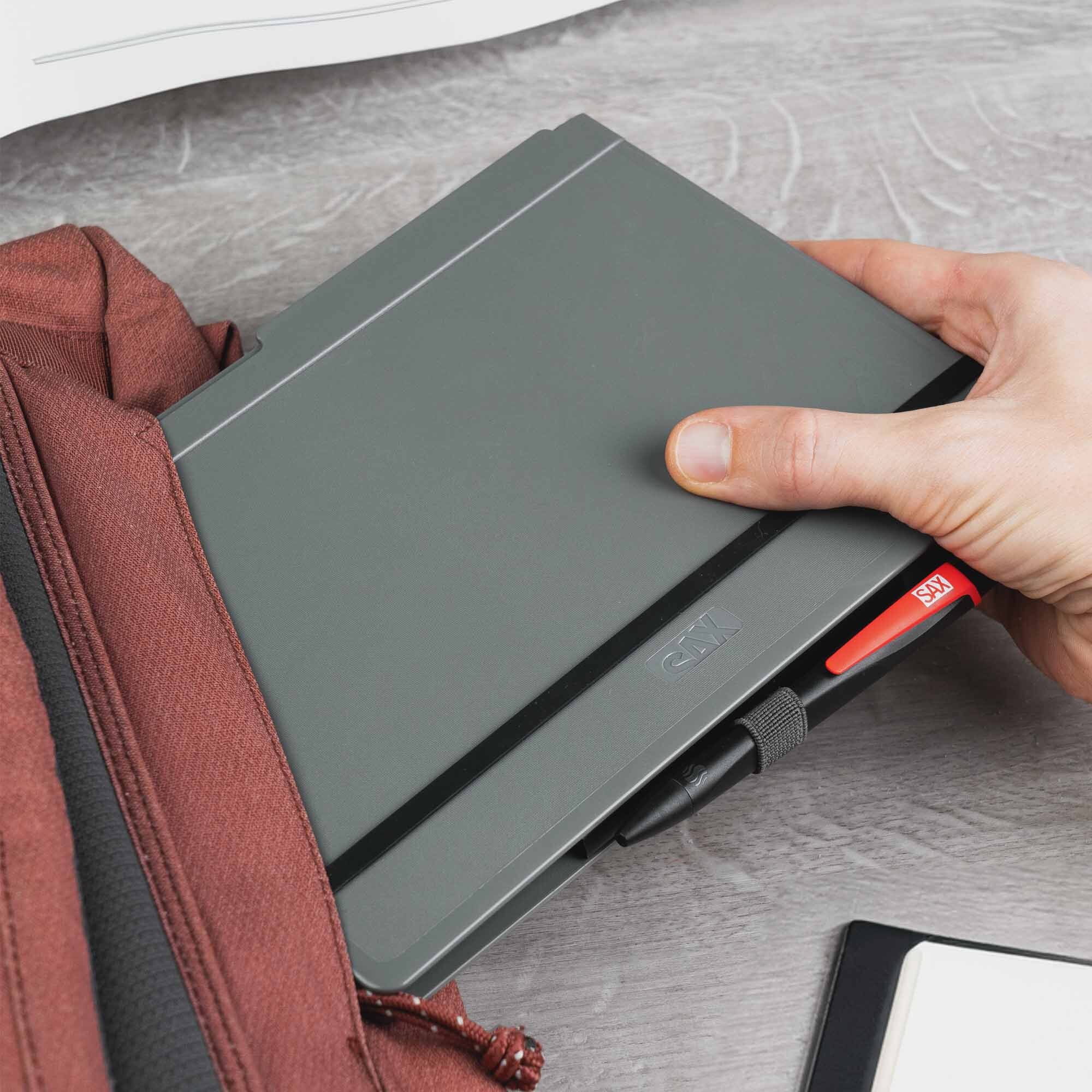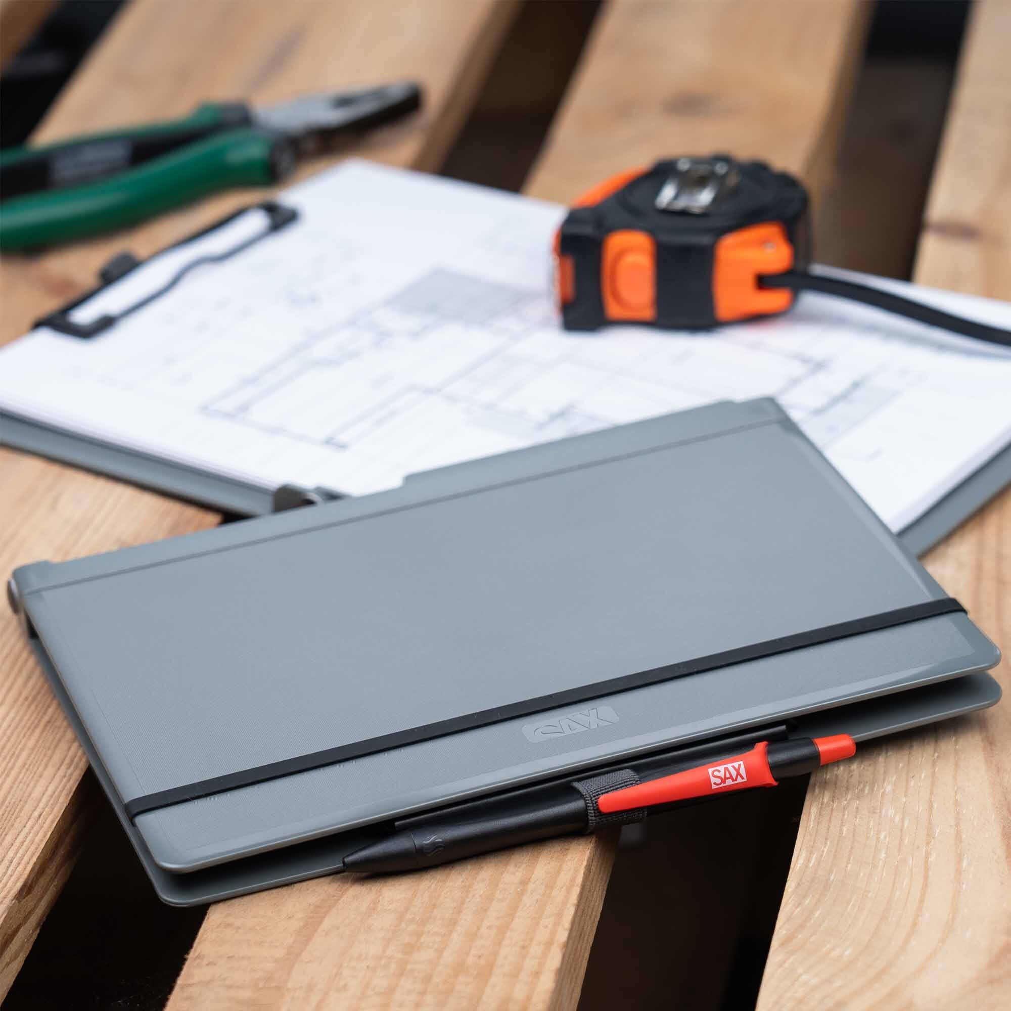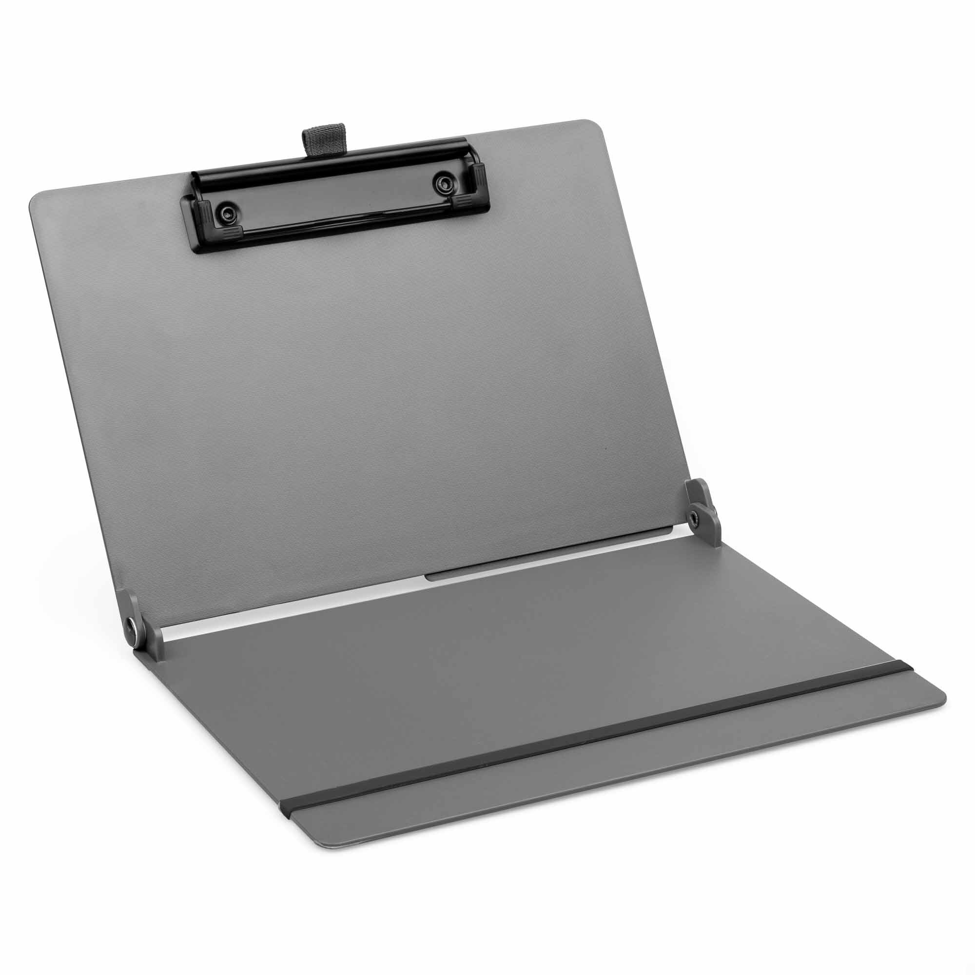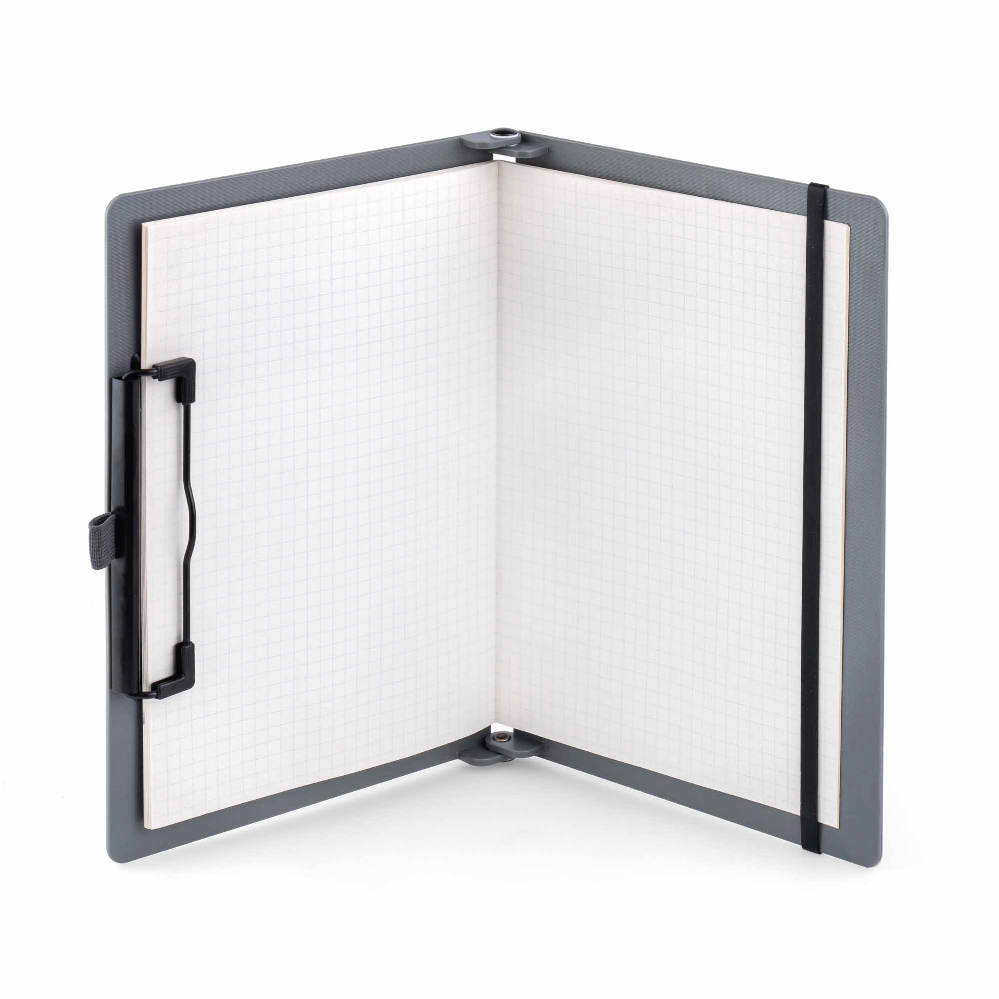Egyedi írópad, rugalmas pánttal, praktikus segédeszköz a kényelmes jegyzeteléshez munkaasztalon kívül is. Ideális jegyzeteléshez füzetekbe vagy űrlapokba terepen, vagy állva íráskor. Stabil támaszt nyújt és egyszerű kezelhetőséget biztosít, bárhol is szüksége van rá.