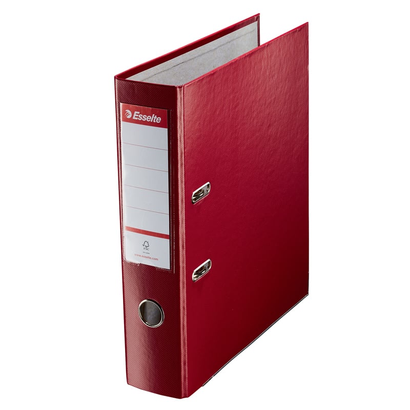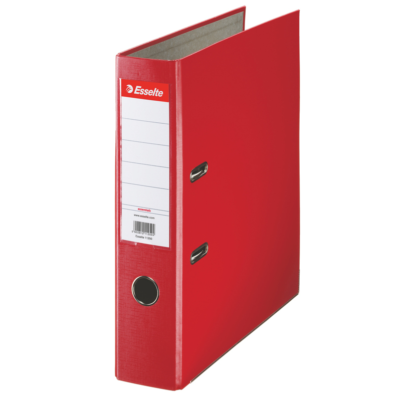Červený zoraďovač formátu A4 potiahnutý plastom z vonkajšej strany a hladkým papierom z vnútornej strany. Chrbtový otvor na jednoduchú manipuláciu, kovové lišty kvôli dlhšej životnosti. Zatvárací mechanizmus drží zoraďovač vždy pevne zatvorený. Chrbtové vrecko s vymeniteľným papierovým štítkom.