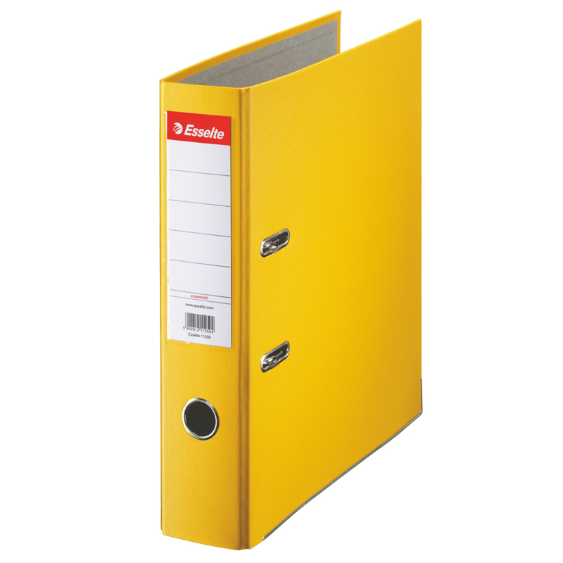 Žltý zoraďovač formátu A4 potiahnutý plastom z vonkajšej strany a hladkým papierom z vnútornej strany. Chrbtový otvor na jednoduchú manipuláciu, kovové lišty kvôli dlhšej životnosti. Zatvárací mechanizmus drží zoraďovač vždy pevne zatvorený. Chrbtové vrecko s vymeniteľným papierovým štítkom.