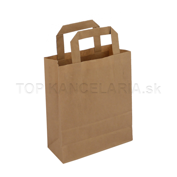 Papierová taška s plochou rúčkou a s vysokou pevnosťou. Je vyrobená z hnedého kraftového papiera pre bezpečnú odnos, prepravu jedál. Rozmer tašky 28x17x27cm. Kartónové balenie 300ks.