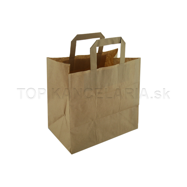 Papierová taška s plochou rúčkou a s vysokou pevnosťou. Je vyrobená z hnedého kraftového papiera pre bezpečnú odnos, prepravu jedál. Rozmer tašky 32x20x28cm. Kartónové balenie 300ks.