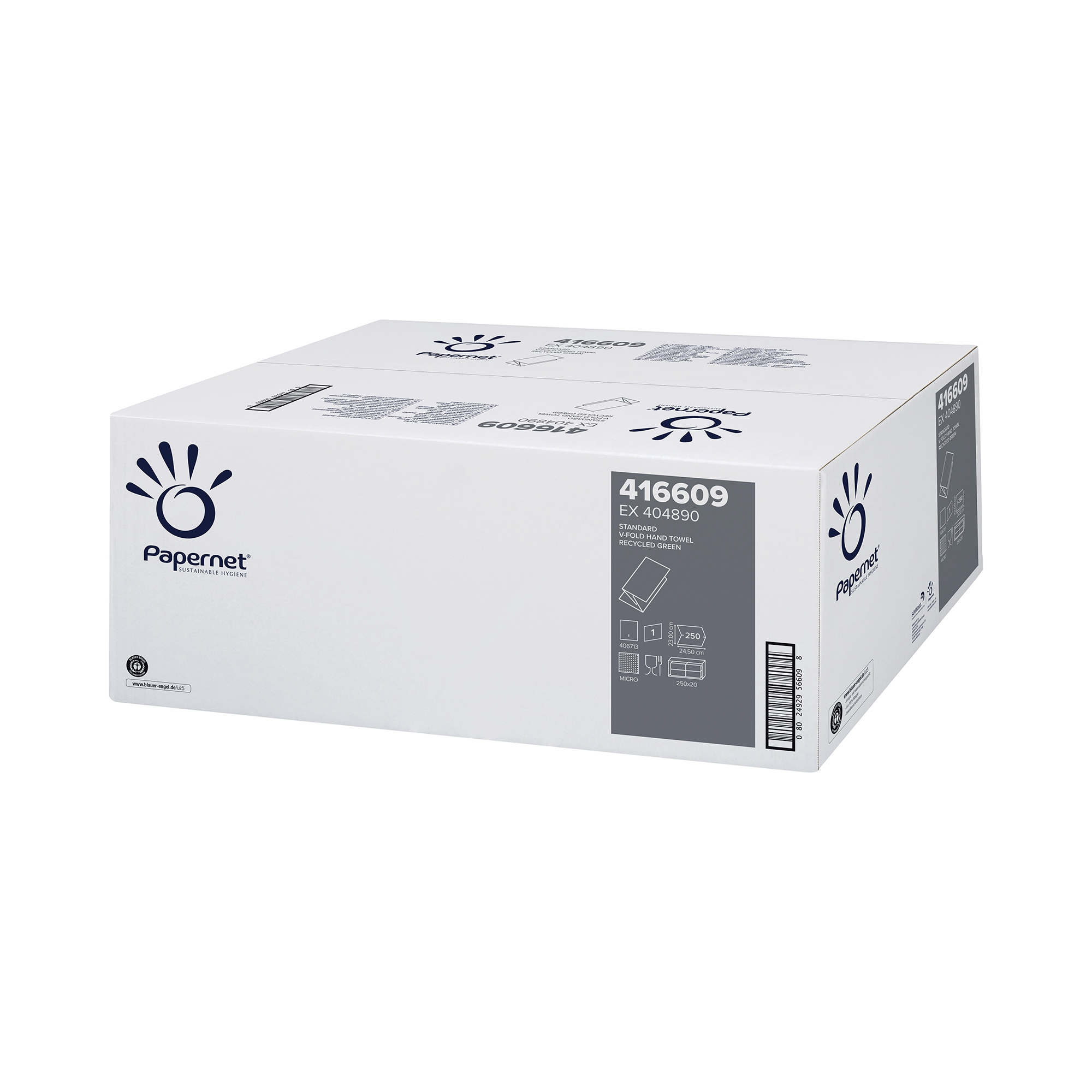 Mikro embosované 1-vrstvové zelené papierové uteráky Papernet sú vyrobené z recyklovaného papiera, čo ich robí ideálnou voľbou pre prevádzky s nižšími nárokmi s dôrazom na nízku obstarávaciu cenu. Sú vhodné na osušenie rúk jednorazovým uterákom. V balení sa nachádza 5000 kusov uterákov, usporiadaných v kartóne po 20 balení, pričom každé balenie obsahuje 250 utierok.