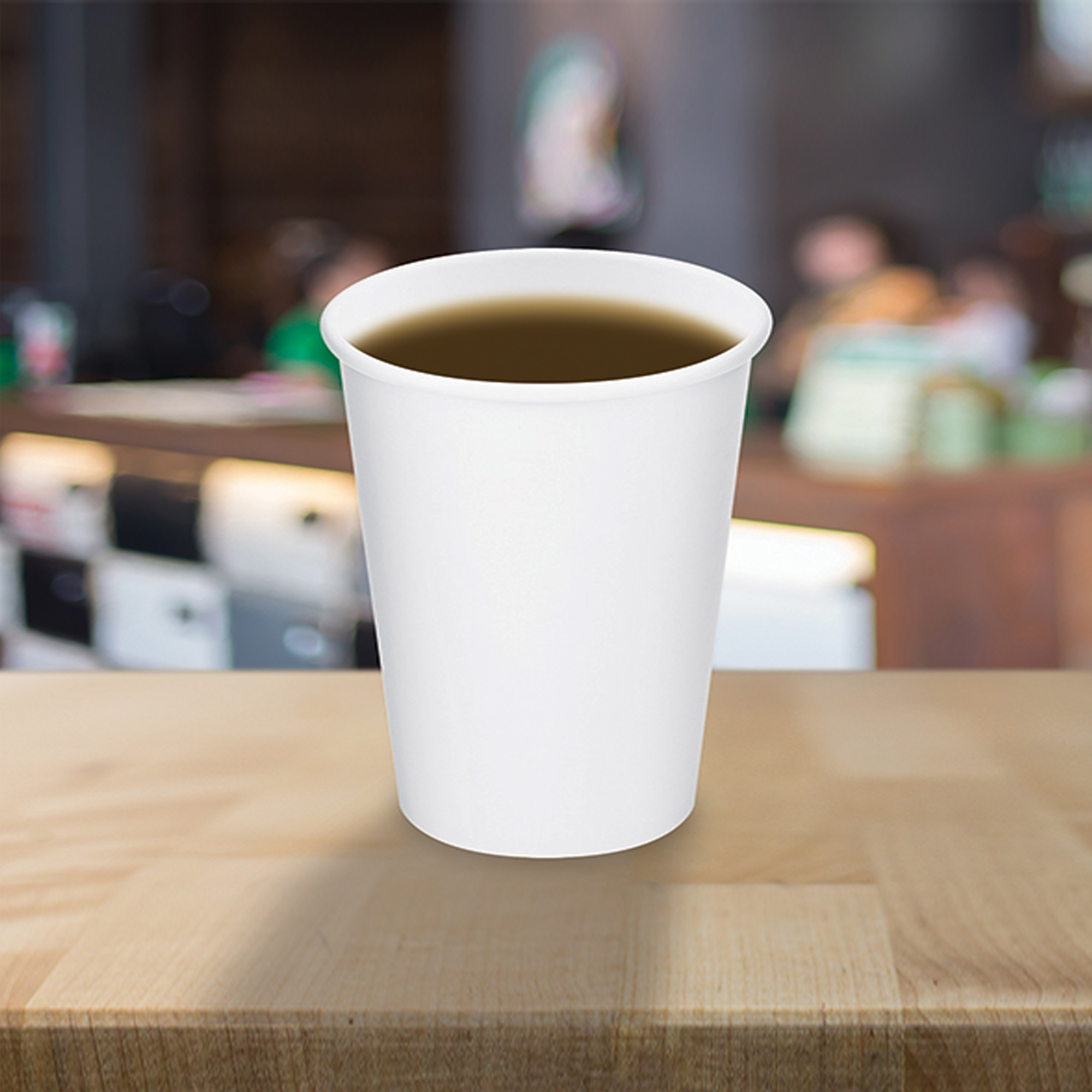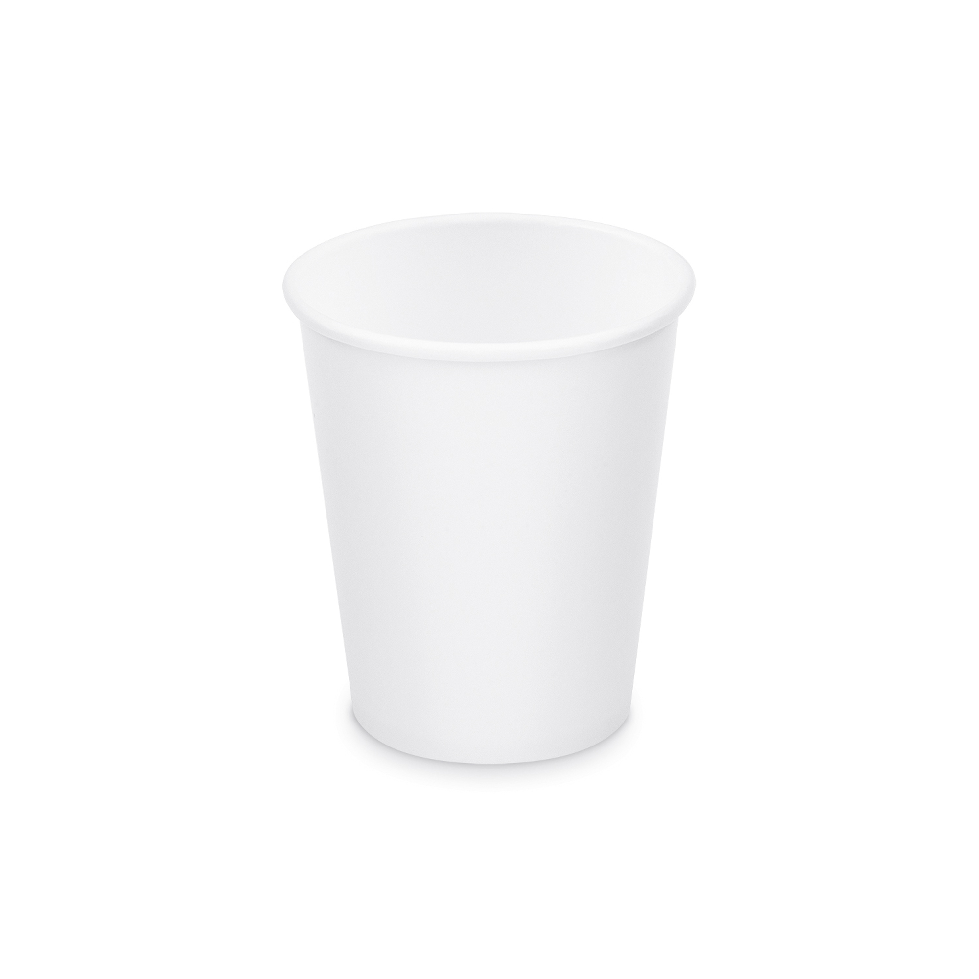 Biely papierový pohár 280ml. Označenie M 0,2L/8oz Vhodné pre horúce a studené nápoje. Výška 9,1cm, pr. 80mm. bal 10 ks
