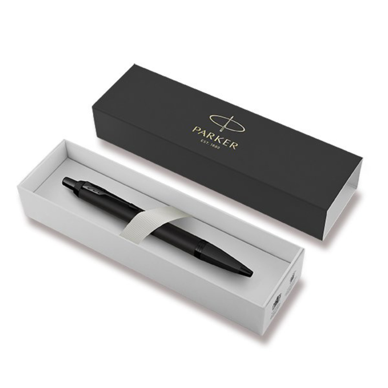 Guľôčkové pero Parker IM Achromatic Black BT lakovanou povrchovou úpravou v kombinácii s doplnkami potiahnutými pomocou techniky PVD odolnou matnou čiernou vrstvou. Racionalita a nadčasová kvalita technologického spracovania Parker IM predurčuje tento modelový rad pre život v pohybe. Nadbytočné detaily sú vynechané, prednosť je daná komfortu a účelnosti. Je to jeden z príkladov múdreho využitia silných stránok Parkeru – dokonalého spojenia tvaru a funkčnosti. Má stláčací mechanizmus. Pero je dodávané s modrou náplňou.