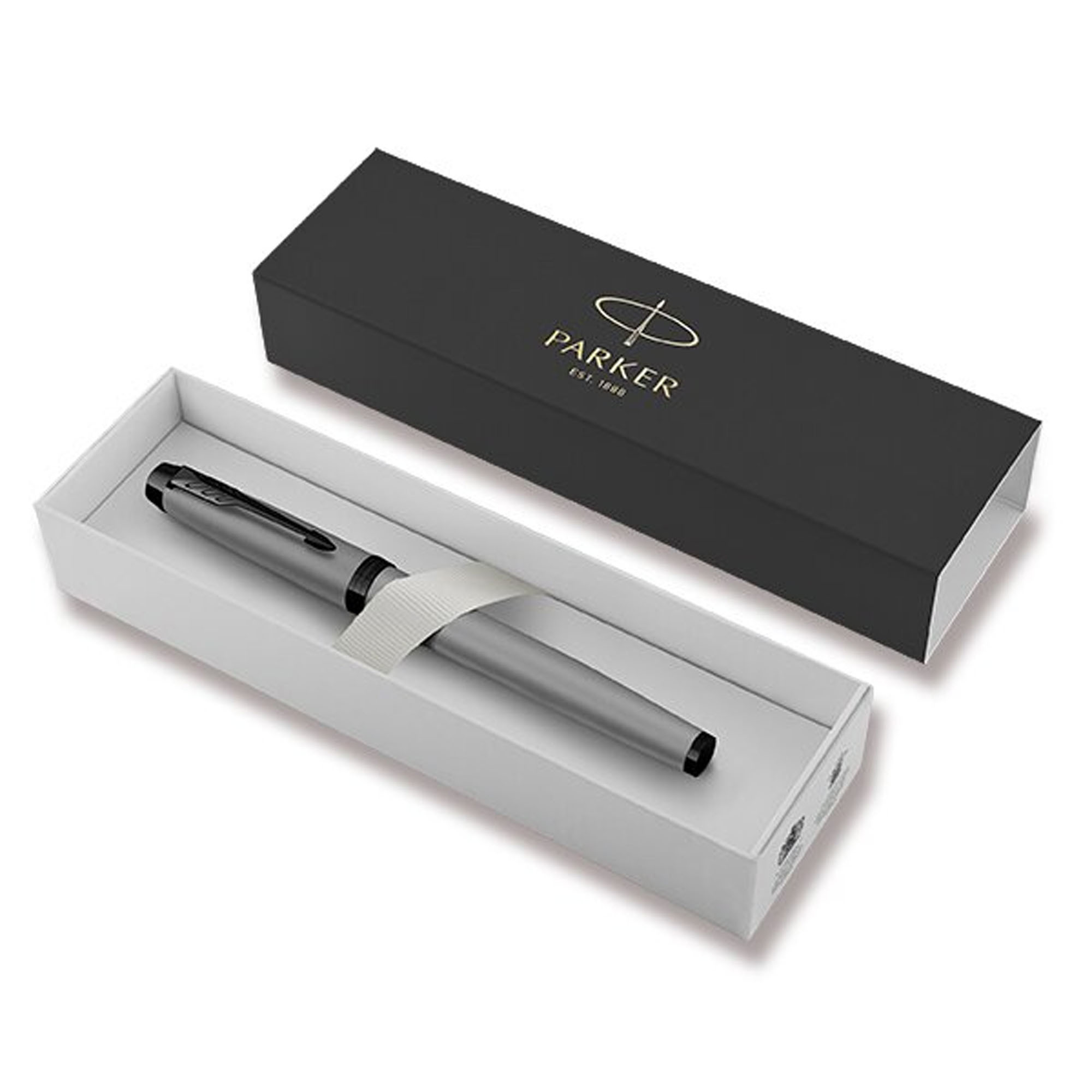 Plniace pero Parker IM Achromatic Grey BT lakovanou povrchovou úpravou v kombinácii s doplnkami potiahnutými pomocou techniky PVD odolnou matnou šedou vrstvou. Hrot z nerez ocele potiahnutý odolnou matne čiernou vrstvou. Pero je prispôsobené výhradne na používanie atramentových bombičiek Quink alebo konvertora (nie je súčasťou balenia). Plniace pero je dodávané s modrou bombičkou. Racionalita a nadčasová kvalita technologického spracovania Parker IM predurčuje tento modelový rad pre život v pohybe. Nadbytočné detaily sú vynechané, prednosť je daná komfortu a účelnosti. Je to jeden z príkladov múdreho využitia silných stránok Parkeru – dokonalého spojenia tvaru a funkčnosti. V novom rade IM Achromatic Parker prvýkrát využíva technológiu PVD. Vďaka módnemu monochromatickému prevedeniu a modernému matnému dizajnu je Parker IM Monochrome ideálnym doplnkom pre mladú generáciu. Je elegantný aj vysoko profesionálny a spoľahlivý.