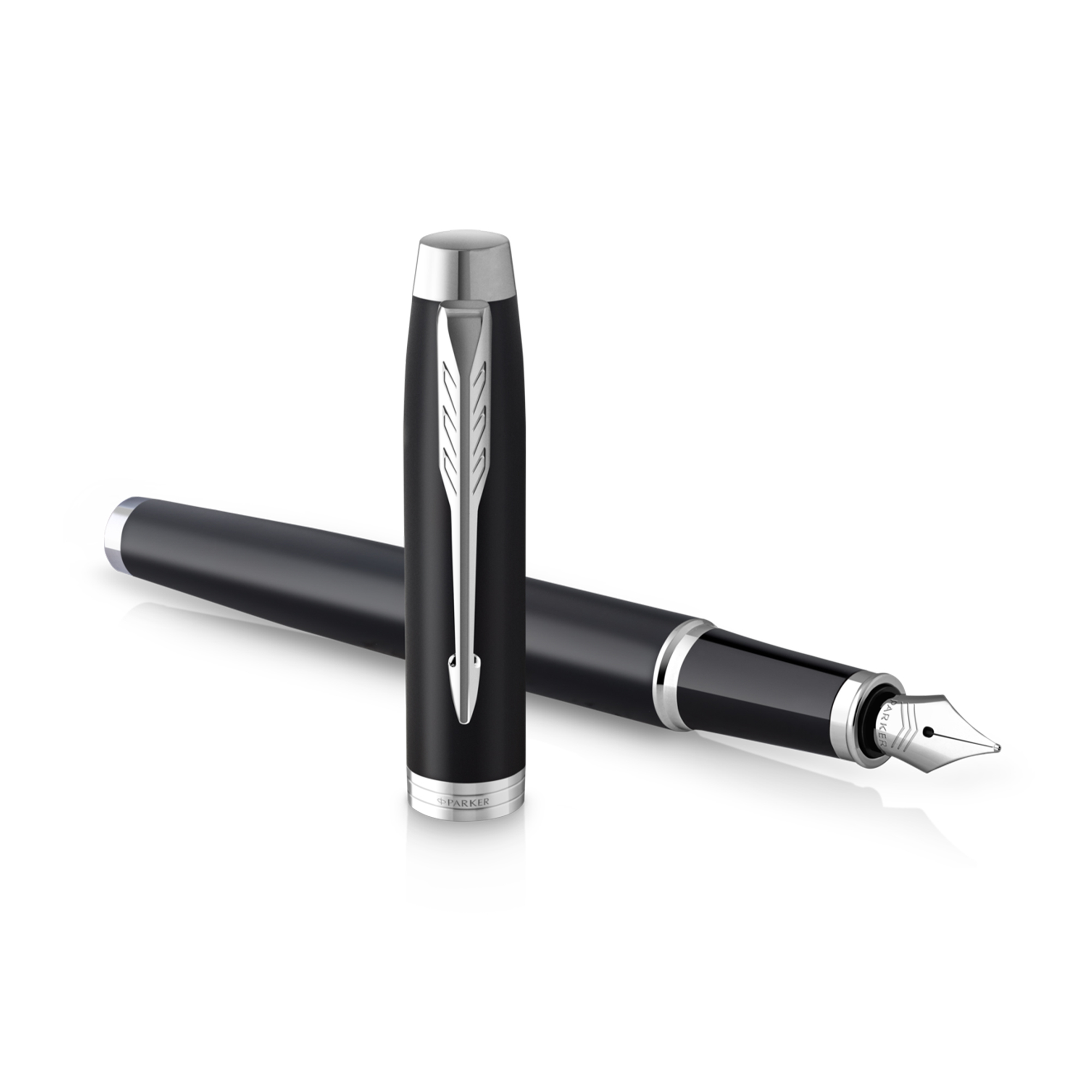 PARKER IM Matte Black CT plniace pero so strieborným klipom Racionalita a nadčasová kvalita technologického spracovania Parker IM. predurčuje tento modelový rad pre život v pohybe. Nadbytočné detaily sú vynechané, prednosť je daná konfortu a účelnosti. Je to jeden z príkladov múdreho využitia silných stránok Parkeru – dokonalého spojenia tvaru a funkčnosti. Hrot vyrobený z nerez ocele, zdobený jemnou rytinou. Má dvojkanálový systém zásobovania hrotu s atramentom. Perá Parker su prispôsobené výhradne k používaniu atramentových bombičiek QUINK alebo konvertoru zn. Parker. Konvertor nie je súčasťou balenia. Pero je dodávané s modrou bombičkou.
