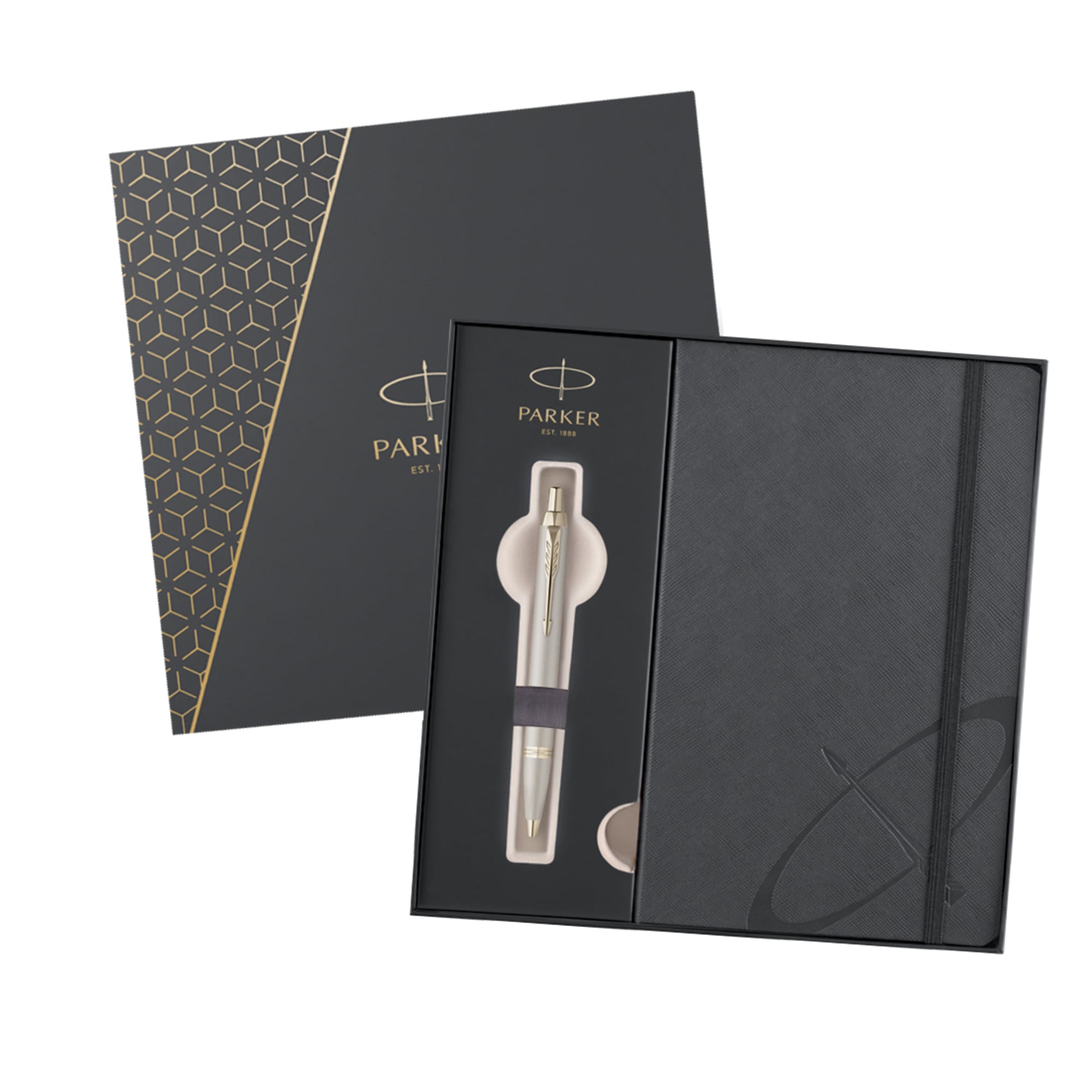 Parker IM Monochrome Champagne GT BP, darčeková kazeta so zápisníkom