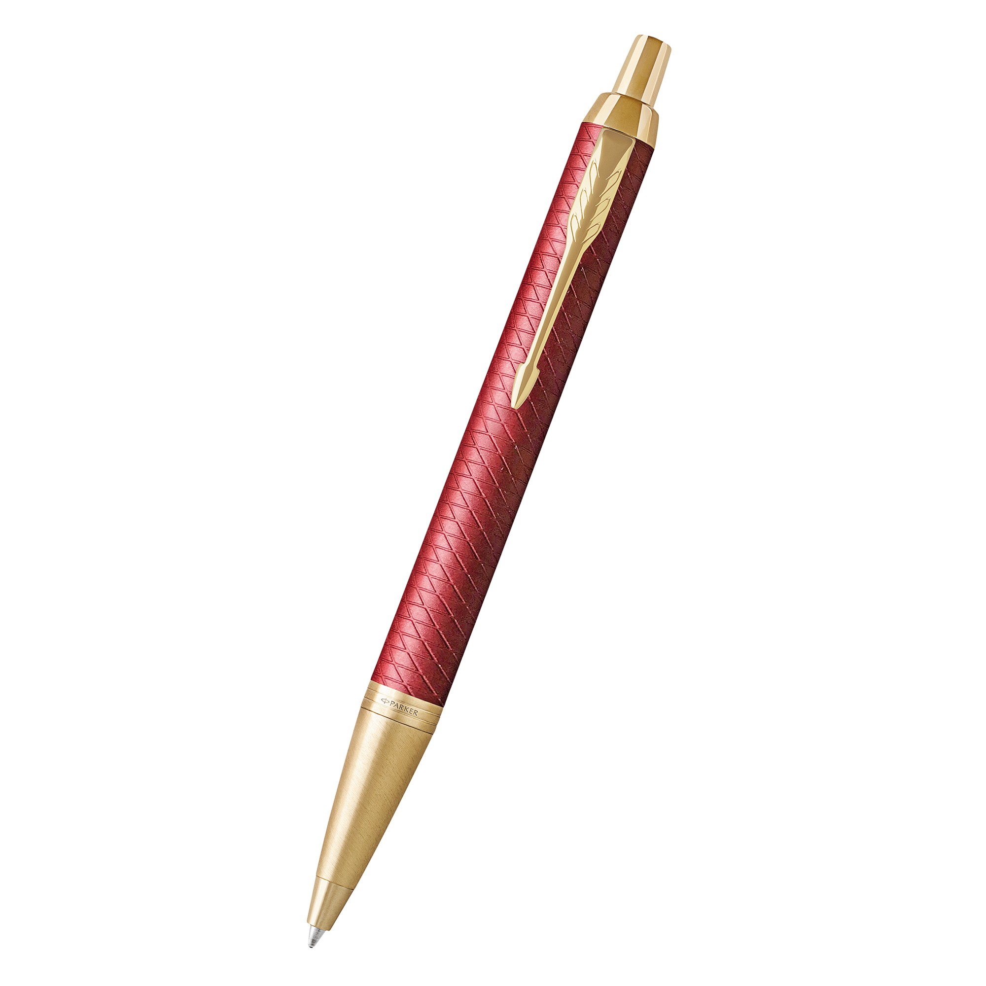 PARKER IM Prémium Red plniace pero GT so zlatým klipom v darčekovej kazete s puzdrom na pero. Vrchnák a telo pera vyrobené z mosadze s ozdobnou rastrovanou reliéfnou rytinou v kombinácii s doplnkami pokovovanými zlatom s leštenou úpravou. Hrot má vyrobený z ušľachtilej nerez ocele. Racionalita a nadčasová kvalita technologického spracovania Parker IM Premium predurčuje tento modelový rad pre život v pohybe. Nadbytočné detaily sú vynechané, prednosť je daná komfortu a účelnosti. Je to jeden z príkladov múdreho využitia silných stránok Parkeru – dokonalého spojenia tvaru a funkčnosti. Pero je dodávané s modrou bombičkou.