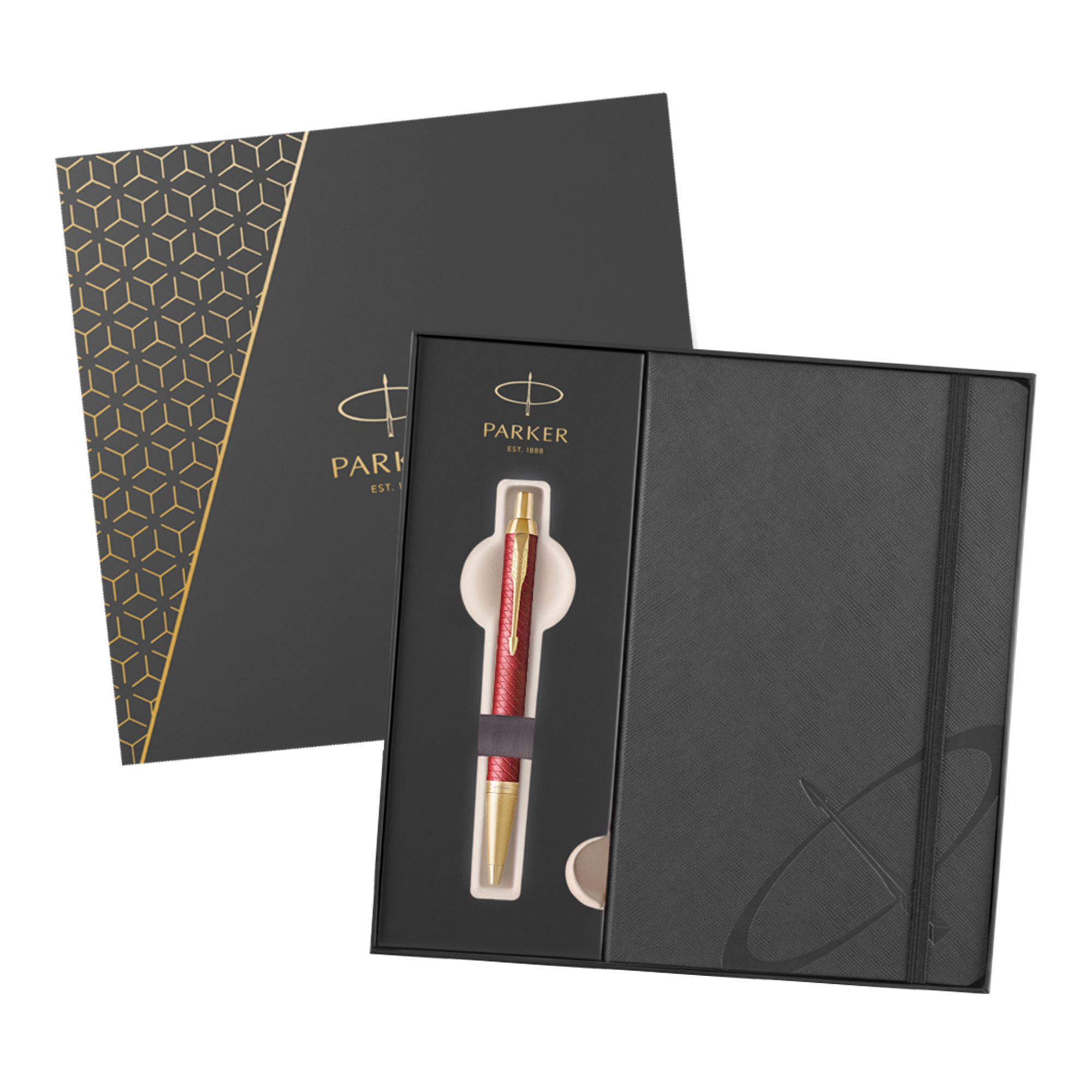 Parker IM Premium červené rastr. pero GT BP v darčekovej kazete so zápisníkom