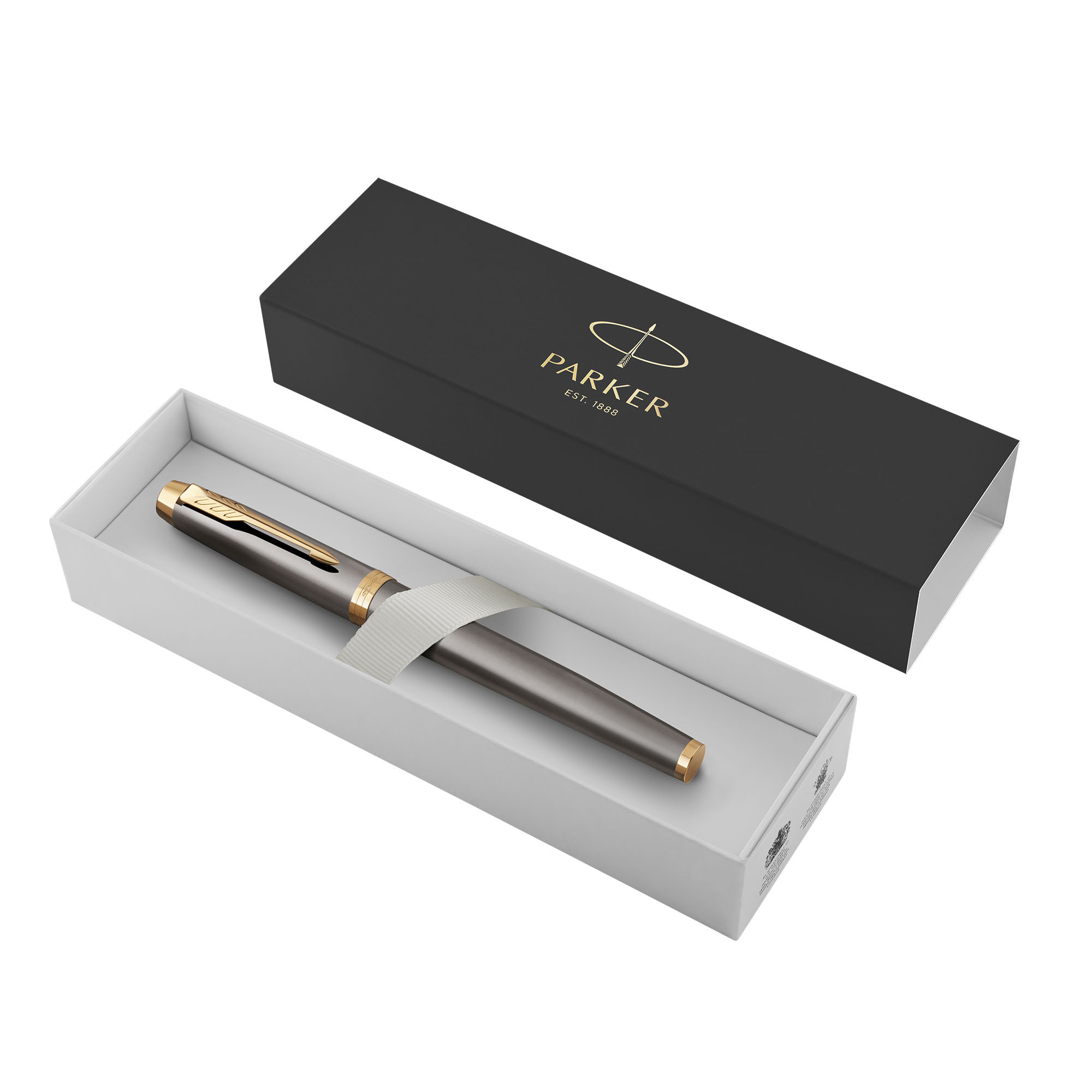 Roller Parker IM Core Grey GT je súčasťou kolekcie Core Grey Finish, ktorá čerpá inšpiráciu z ikonickej série Parker Pioneers. Pero sa pýši povrchovým lakovaním v elegantnej šedej farbe, špeciálne vytvorenej pre túto kolekciu, ktorá zvýrazňuje jeho nadčasový dizajn. Telo a vrchnák sú vyrobené z nerezovej ocele v ikonickom šedom odtieni a doplnené pozláteným klipom a ďalšími doplnkami aplikovanými technikou PVD. Úchopová časť z čierneho lesklého plastu zaisťuje pohodlné držanie. Parker IM je skutočne ideálny partner s neobmedzenými možnosťami. Tento model spája eleganciu s vysokou profesionalitou a spoľahlivosťou, čo ho robí vhodným pre každú príležitosť. S odolným hrotom z ušľachtilej nerezovej ocele a širokou paletou prevedení, ktoré sú inšpirované bohatou tradíciou značky Parker, poskytuje užívateľské pohodlie a maximálnu výkonnosť. Parker IM je ideálnym spoločníkom pre tých, ktorí ocenia kvalitu a štýl.