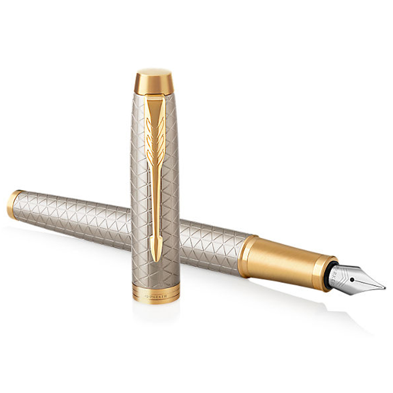 Parker IM Premium strieborný rastr. plniace pero so zlatým klipom GT FP