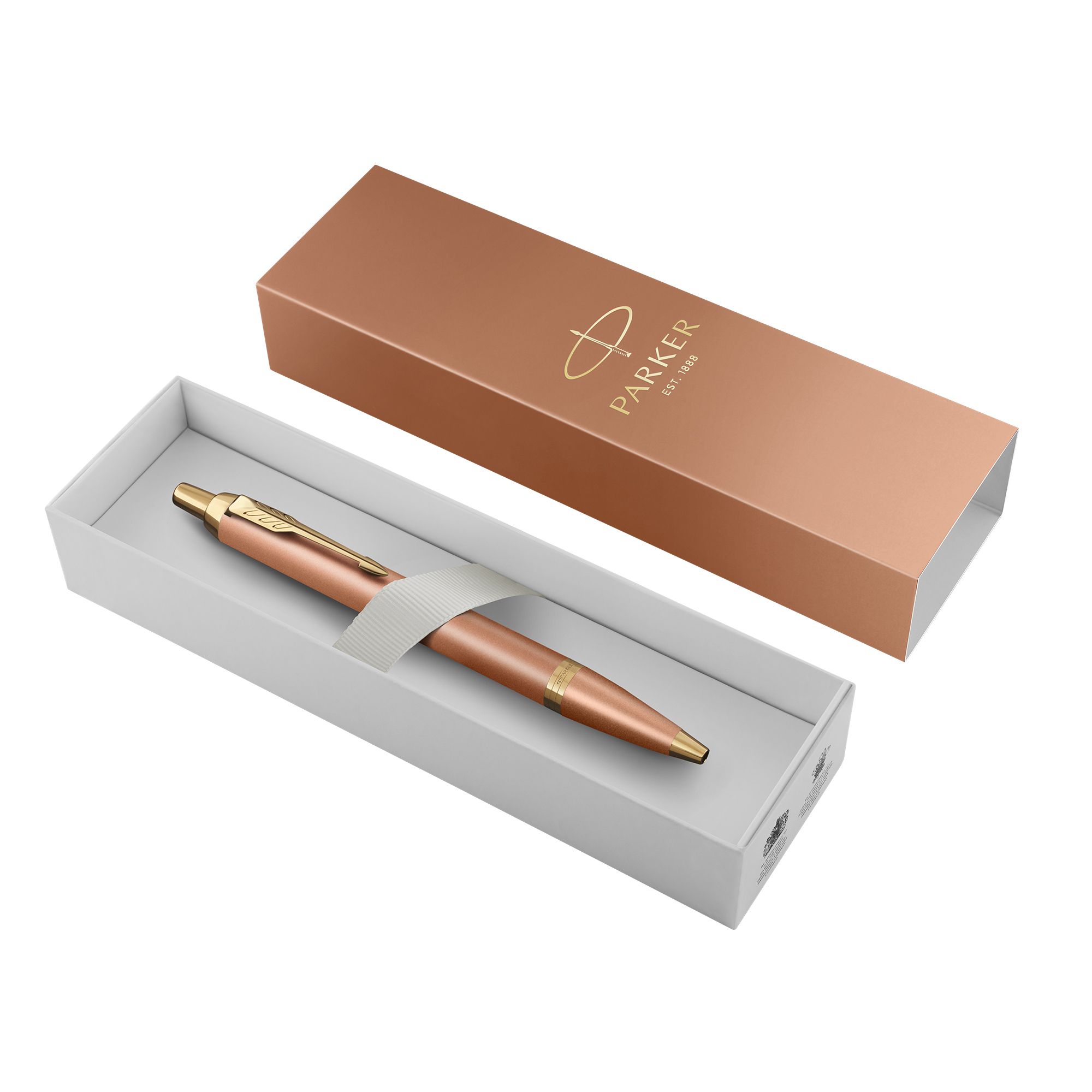 Guľôčkové pero Parker IM Writing Rituals Orange GT má telo pokryté saténovo metalickým lakom.. Doplnky sú pokryté zlatou farbou pomocou techniky PVD, čo dodáva peru nádych luxusu. Funguje na stláčací mechanizmus a je dodávané s modrou náplňou. Kolekcia Parker IM Writing Rituals sa zameriava na podporu wellness a zdravých písacích návykov. Tieto perá majú ideálne vyváženú hmotnosť, esteticky dokonalý dizajn a príjemné držanie, čo umožňuje plynulý tok atramentu. Zároveň pôsobia upokojujúcim a inšpiratívnym dojmom vďaka farebným prechodom, ktoré obohacujú zážitok z písania o štipku luxusu.