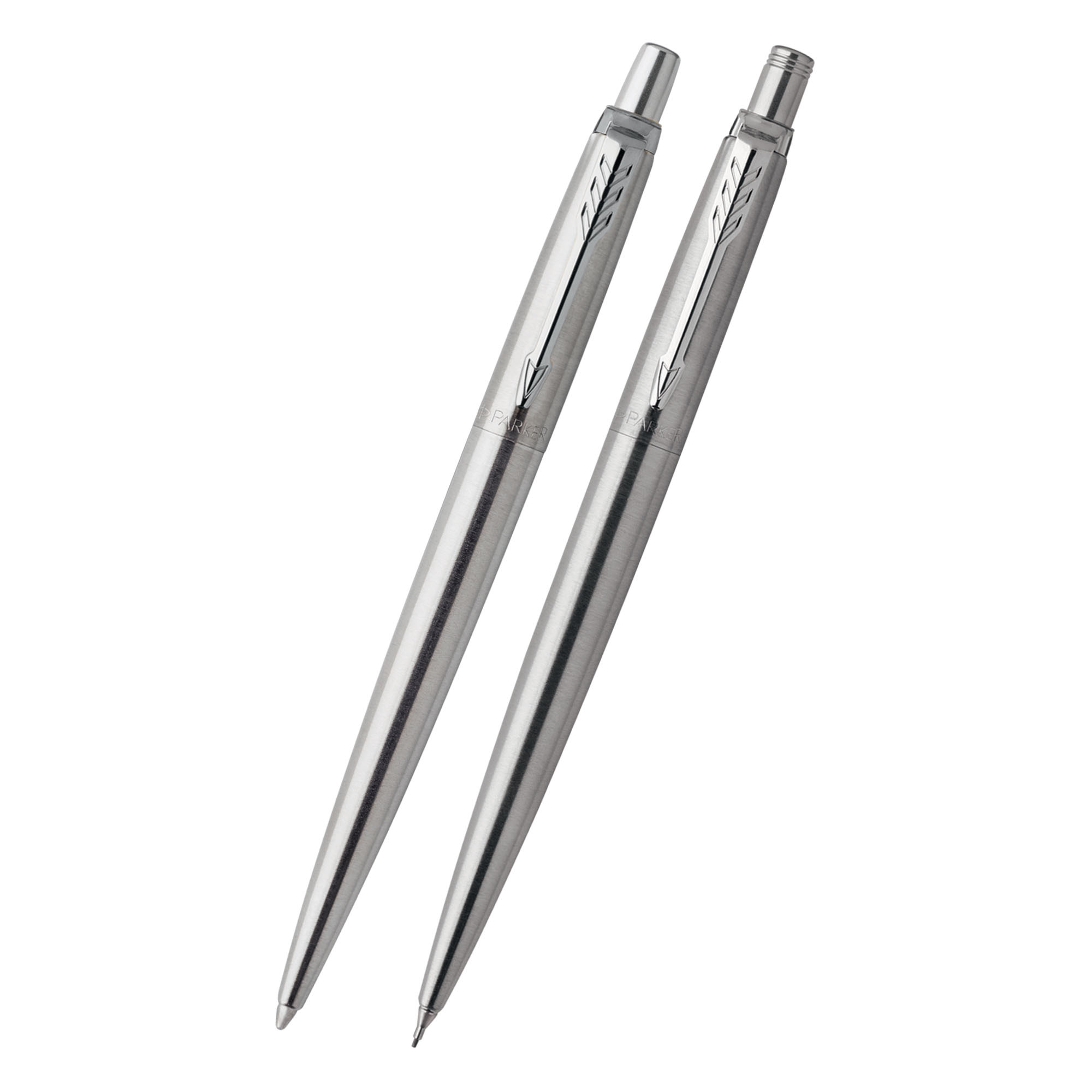 Súprava Duo Set obsahuje guľôčkové pero Parker Jotter Stainless Steel a mechanickú ceruzku Parker Stainless Steel