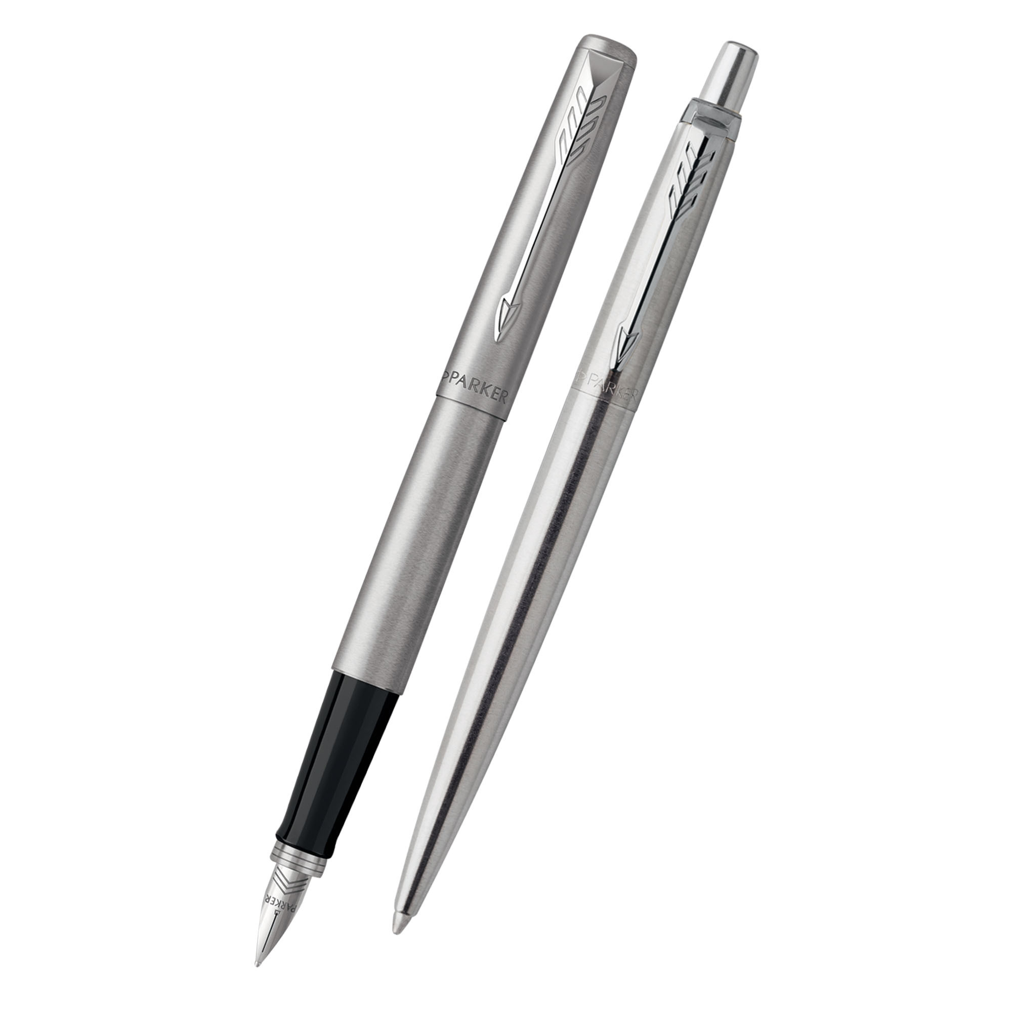 Súprava Duo Set obsahuje guľôčkové pero Parker Jotter Stainless Steel a plniace pero Parker Jotter Stainless Steel.