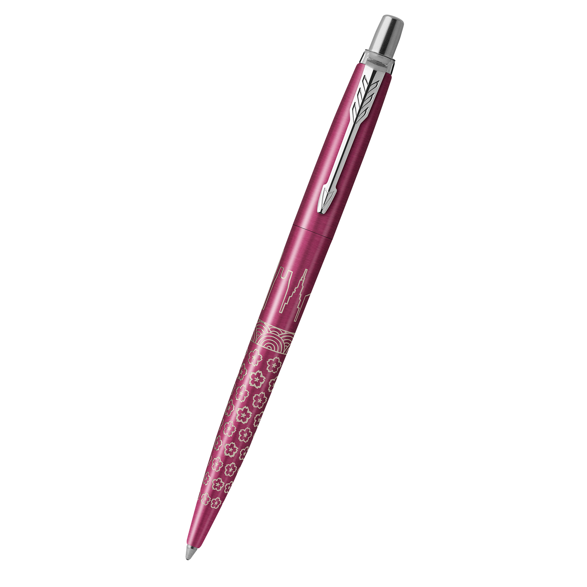 Špeciálna edícia Parker Jotter Global Icons je kolekcia vytvorená spoločnosťou Parker na počesť najohromujúcejších miest sveta. Guľôčkové pero Parker Jotter SE Tokyo Pink CT z tejto edície zaujme originálnym dizajnom inšpirovaným japonskou metropolou Tokyom. Telo pera je vyrobené z kvalitnej nehrdzavejúcej ocele a pokryté jemným ružovým lakom, ktorý evokuje eleganciu a ženskosť. Laserom gravírovaný vzor zachytáva ikonické motívy mesta a rozkvitnuté kvety japonskej čerešne Sakura, ktoré sú symbolom krásy a pominuteľnosti. V kombinácii s doplnkami z nehrdzavejúcej ocele pôsobí pero štýlovo a moderne. Dodávané je v elegantnom darčekovom balení s vizuálom mesta Tokyo, vďaka čomu je ideálnym darčekom pre milovníkov japonskej kultúry, dizajnu a značky Parker.