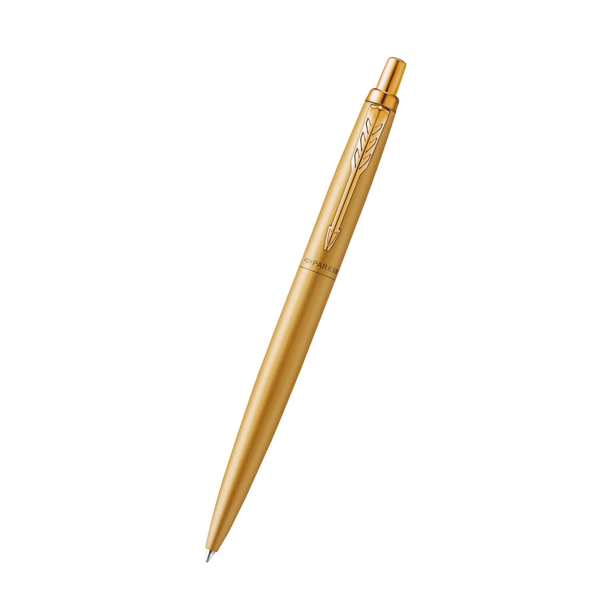Parker JOTTER XL Monochrome zlaté pero so zlatým klipom. Zlaté lakované telo a zlatá lakovaná vrchná časť z nerez ocele. V kombinácii s doplnkami potiahnutými pomocou techniky PVD odolnou matne zlatou vrstvou. Kolekcia parker Jotter XL sa pýši rysmi typickými pre klasickú dizajnovú radu Jotter. Rozmery ako dĺžka a priemer pera boli zväčšené o 7%. Toto guľôčkové pero obľúbia najme tí, ktorý preferujú robustnejšie perá. Rovnaké tvary, charakteristický klip a nezameniteľné cvaknutie pri stlačení je Jotter XL dizajnérskou klasikou vo väčšom prevedení. Možnosť značenia laserové gravírovanie.