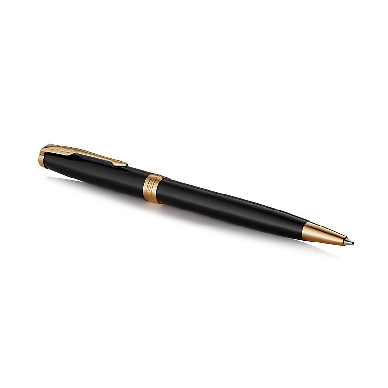 Parker Sonnet Black guľôčkové pero so zlatým klipom GT BP Nadčasovo elegantné pero Parker Sonnet s čiernym lakovaným telom, v kombinácii s doplnkami pokovovanými zlatom. Model Sonnet od značky Parker zosobňuje nadčasovú eleganciu a vycibrený štýl, pričom jeho rozmanité povrchové úpravy nadväzujú na dlhoročnú dizajnérsku tradíciu Parker. Tento model je dôkazom majstrovského spracovania, od hrotov z 18-karátového zlata až po ideálne rozloženie hmotnosti, pričom je zostavený z celkom 17 rôznych dielov. Rada Sonnet tak predstavuje skutočne nadčasový štýl, ktorý si uchováva aktuálnosť aj dnes. Používa otočný mechanizmus. Pero je dodávané s čiernou náplňou. Vyrobené vo Francúzsku. Dodávané v elegantnom darčekovom balení.