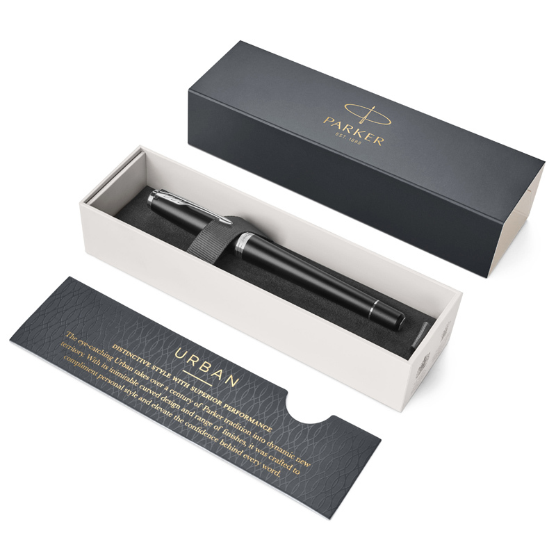 PARKER URBAN čierne matné gulôčkové pero Urban je mladá, svieža generácia písacích potrieb v ktorej sa spája ergonomická nekonvenčnosť tvaru s dokonalým vyvážením a kvalitou. Je navrhnutý tak, aby robil dojem, vytvorený aby fungoval. Ak je kvalita súčasťou Vášho image, zvoľte si pre svoj moderný životný štýl Parker Urban. Doplnky sú pokovované zlatom.