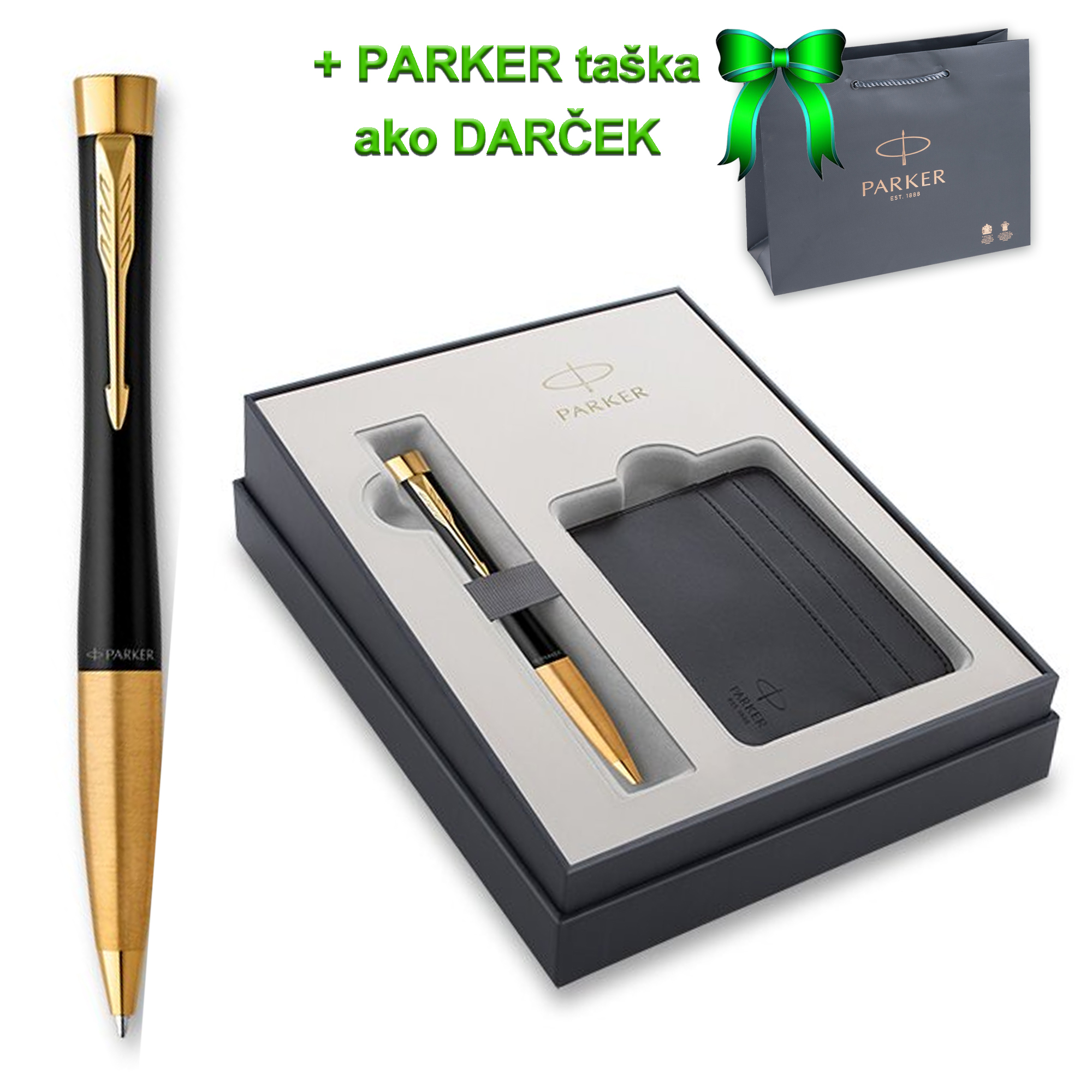 Parker URBAN Muted čierne pero GT BP, darčeková kazeta s puzdrom  Čierna