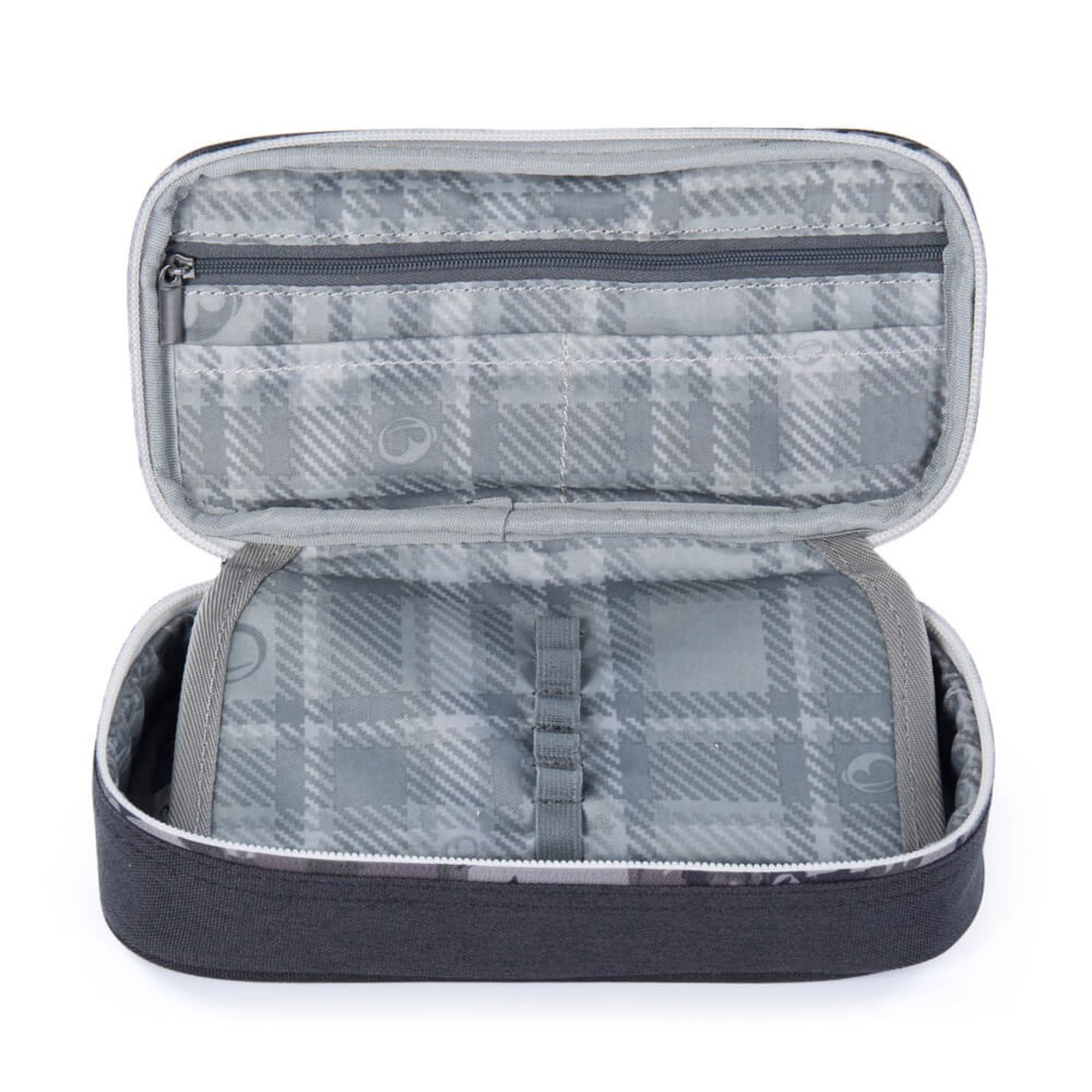 Jednokomorový priestranný študentský peračník s obojstrannou prepážkou - množstvo gumových úchytov, vrecká vo vnútri peračníka. Ideálne príslušenstvo k batohu FLICK 22 B. Jedno vnútorné vrecko na zips a dve menšie vrecká napr. na kartičky. 20 pružných úchytov na písacie potreby a ceruzky. Zapínanie na zips. Rozmery 21,5x11x6,5cm