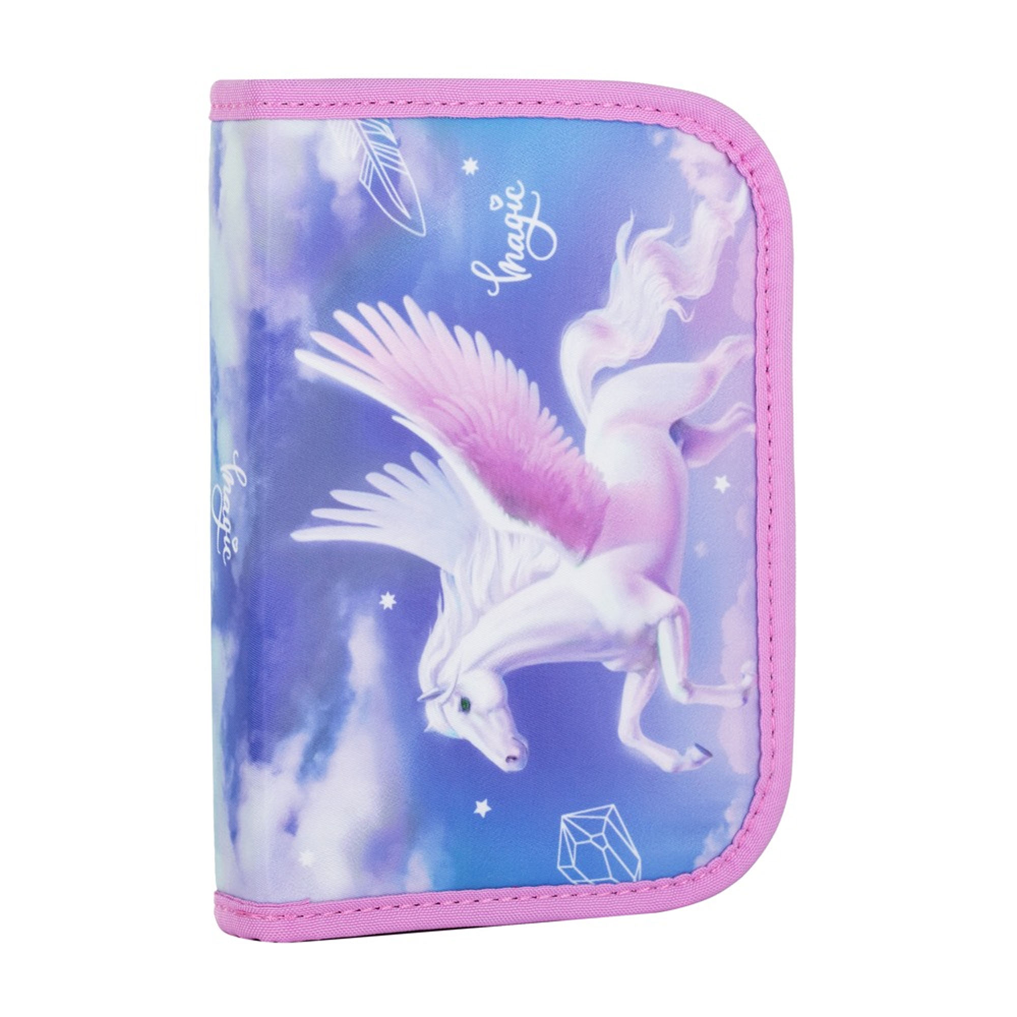 Jednoposchodový prázdny školský peračník s dvomi chlopňami. Je vybavený 25 gumovými pútkami na uchytenie písacích a kresliacich potrieb. Na vnútornej chlopni je puzdro z priehľadnej fólie na rozvrh hodín. Praktický peračník s obľúbeným motívom, do ktorého sa zmestí veľké množstvo písacích a kresliacich potrieb. Či už vaše dieťa píše domácu úlohu alebo kreslí obrázok, všetko potrebné nájde vo svojom peračníku. Peračník je polstrovaný, čo zabezpečuje spoľahlivú ochranu všetkých písacích potrieb vašich detí. Zapínanie je riešené kvalitnými zipsom s veľkými ťaháčikom, čo umožňuje deťom ľahkú manipuláciu s puzdrom.