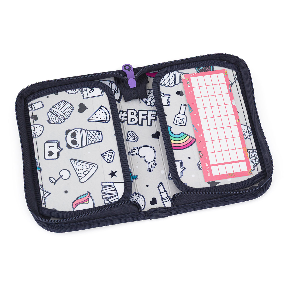 Študentský peračník s prepážkou s množstvom gumových úchytov.