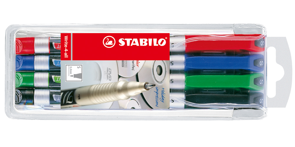 Popisovač vhodný predovšetkým na písanie na najrôznejšie plastické sklo, filmy... Permanentný atrament na alkoholovej báze, vláknový hrot, šírka stopy 1 mm. Väčšie balenie 10 ks. Farba: sada 4 farieb Balenie: 1 ks