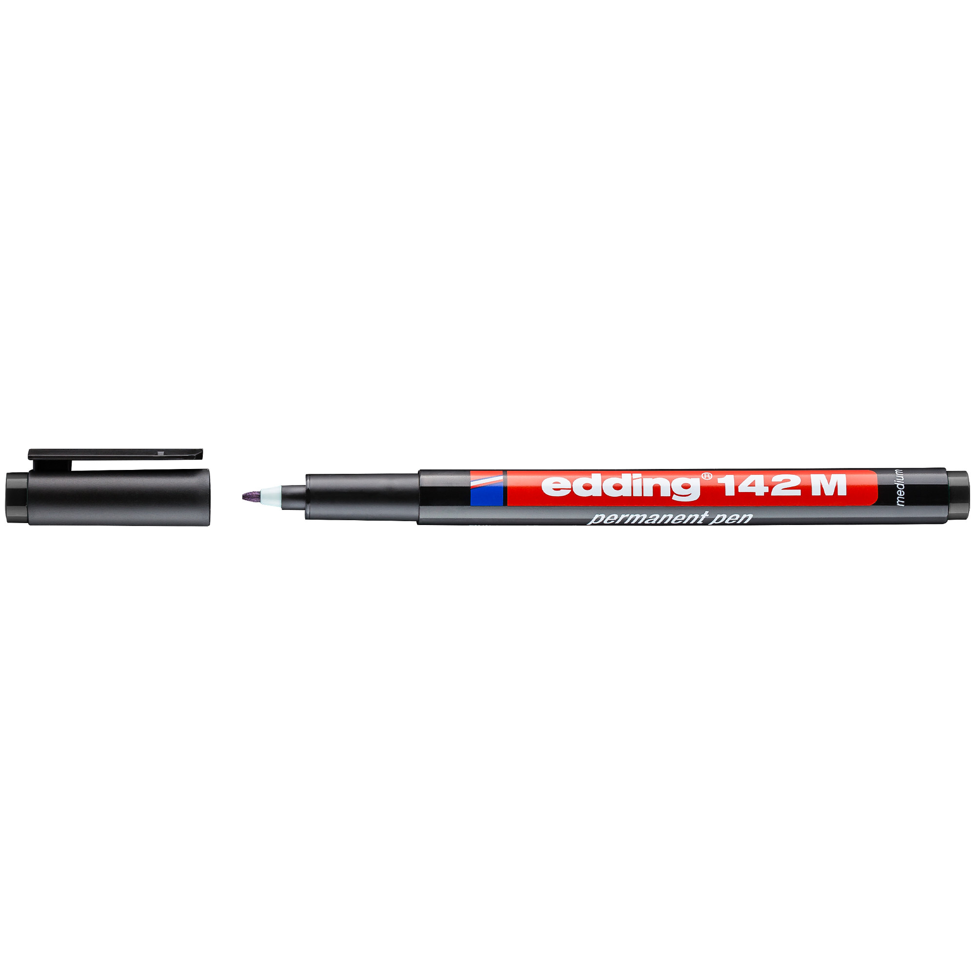 Permanentný popisovač Edding 142 M so stopou písma 1 mm. Obsahuje vysoko nepriehľadný atrament, určený na popisovanie priesvitných fólií na spätnú projekciu napr. fólie OHP , ale aj sklo a umelú hmotu. Vhodný na veľmi jemné trvalé písanie prakticky na všetky hladké povrchy . Písmo je možné odstrániť, opraviť pomocou alkoholu. Atrament permanentného popisovača je vodeodolný a rýchloschnúci. Uzáver sa dá nasadiť na koniec popisovača, aby sa zabránilo jeho strate. Vďaka praktickému klipu sa dá popisovač pripevniť na odev a predmety a neodkotúľa sa. Široký výber farieb. Vysokokvalitný značkový popisovač dostupný v čiernej, červenej, modrej, zelenej, oranžovej a hnedej farbe