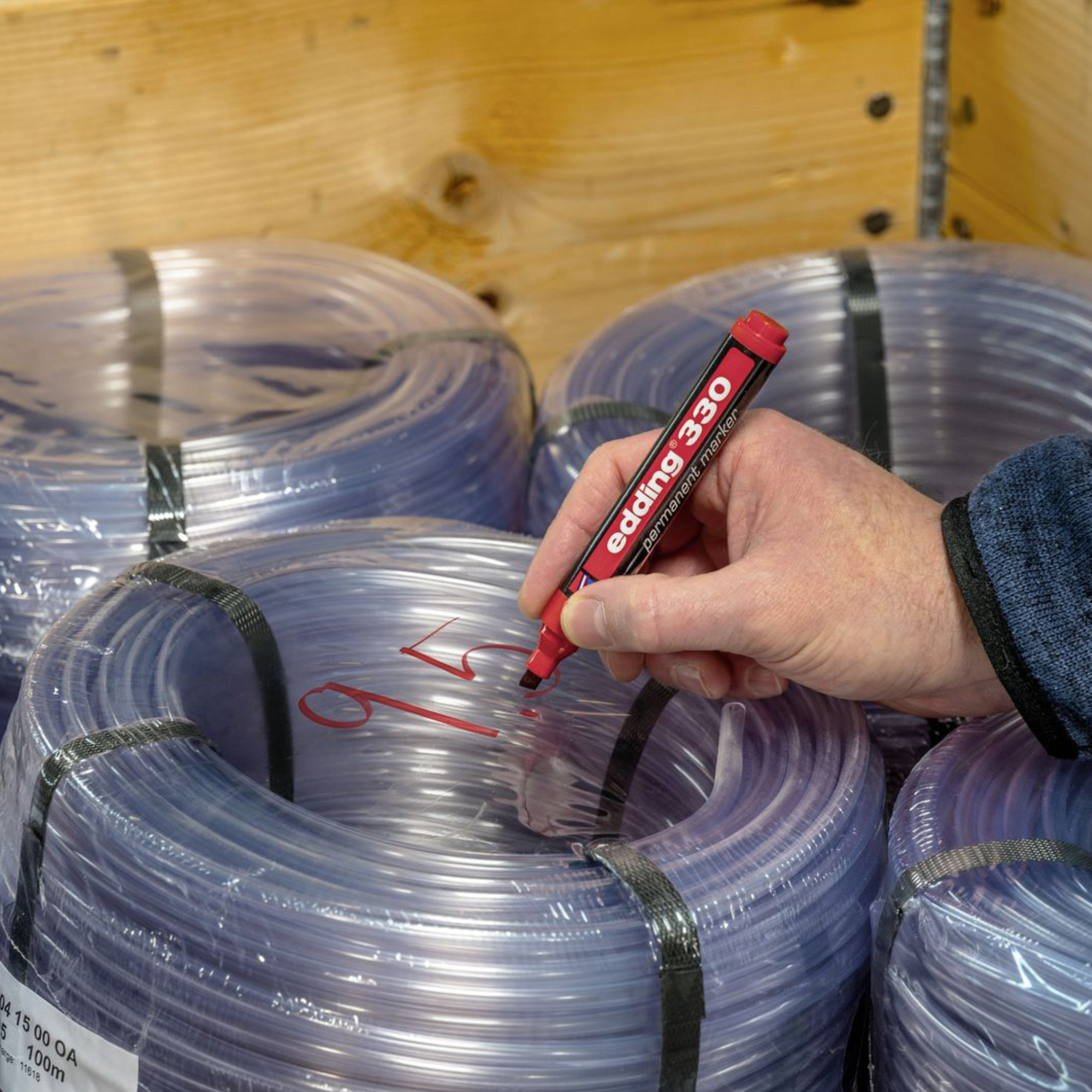Univerzálny permanentný značkovač na označovanie rôznych povrchov. Jeho odolnosť voči vode, oteru, poveternostným vplyvom a teplote do 100 °C zabezpečuje, že vaše označenia zostanú trvalé a nezmazateľné. Vďaka alkoholovej báze je značkovač vhodný pre širokú škálu materiálov a povrchov. S valcovým hrotom ponúka plynulé a presné písanie, pričom šírka stopy 2,5 mm umožňuje vytvárať jasné a dobre čitateľné označenia. 57 % materiálu použitého pri výrobe je recyklovaného, čím sa prispieva k ochrane životného prostredia.. Farba: červená Balenie: 1 ks